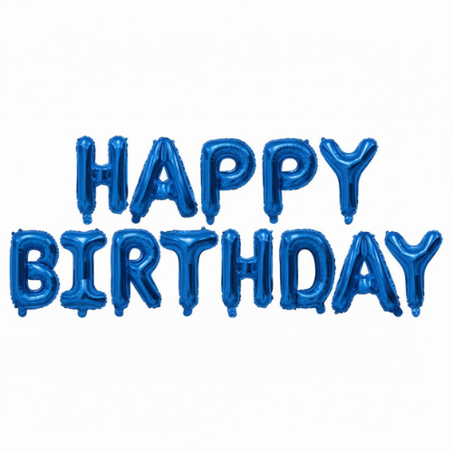 This is a complete set of Foil Letter Balloons that spells out the phrase "HAPPY BIRTHDAY". The image shows the set in a vibrant blue color, with each individual letter standing approximately 16 inches tall. These balloons are designed to be filled with air (not typically helium, due to their size) and hung as a banner using the small tabs provided on each letter, instantly creating a stunning, high-impact backdrop for any birthday celebration.
