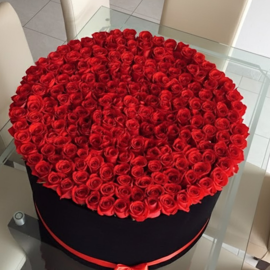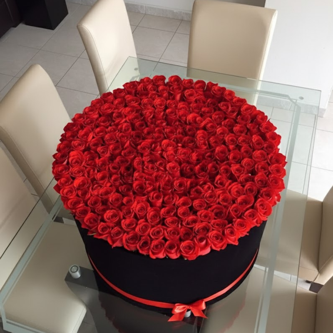 300 Luxury Red Roses with Black Round Box