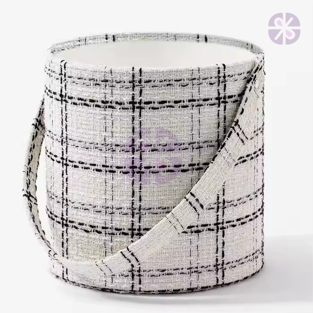 40 White Roses in Hungging Tweed Round Gift Box