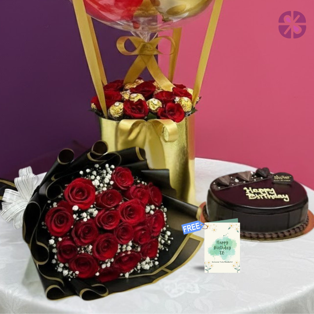 Birthday Grandeur Ultimate Fresh Rose & Balloon Combo Set