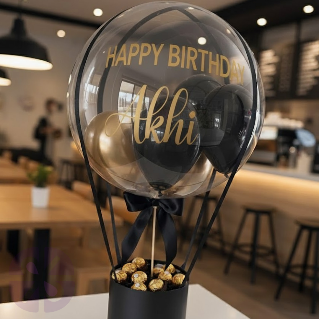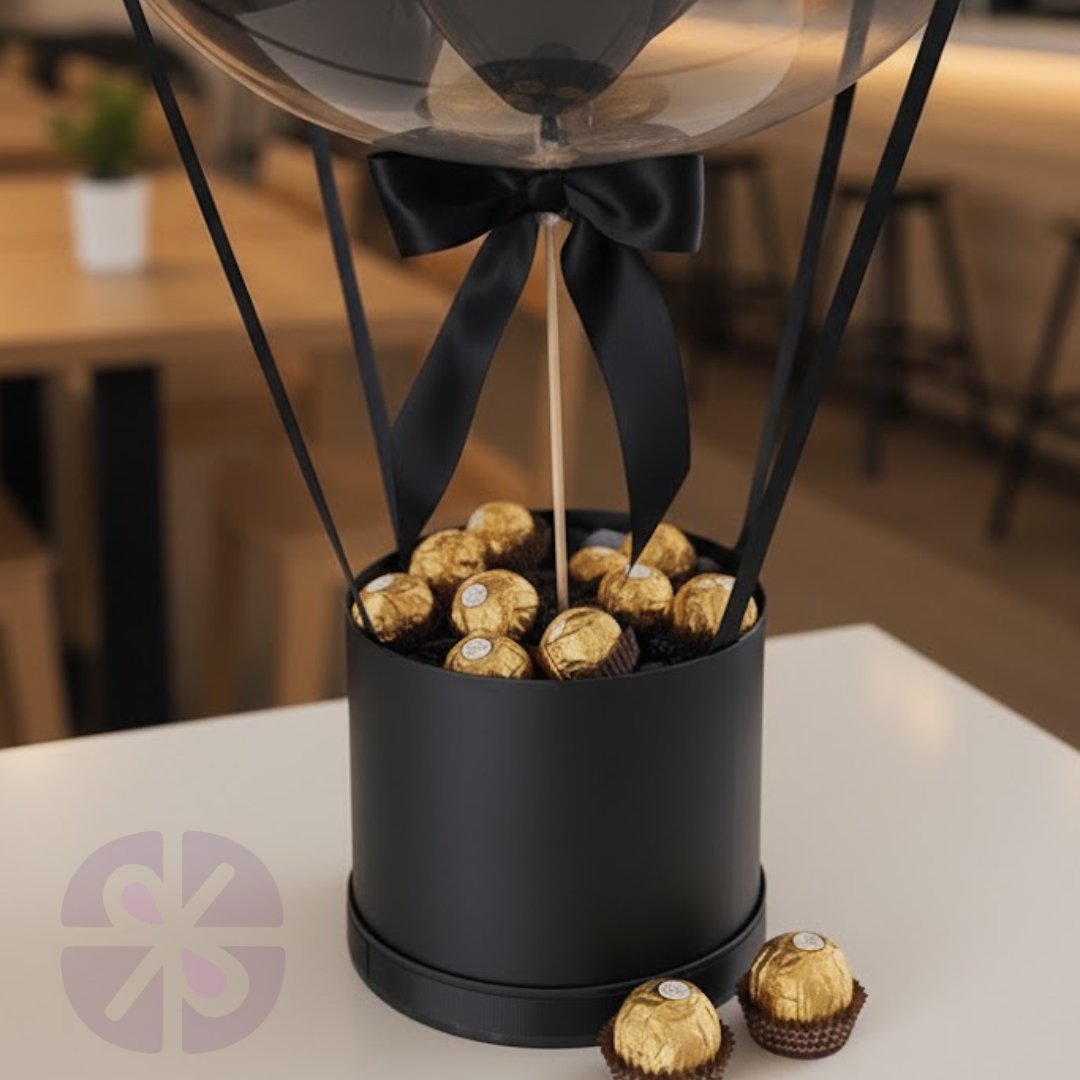 Black & Gold Mix Air Balloon Bouquet with Ferrero Rocher Chocolates