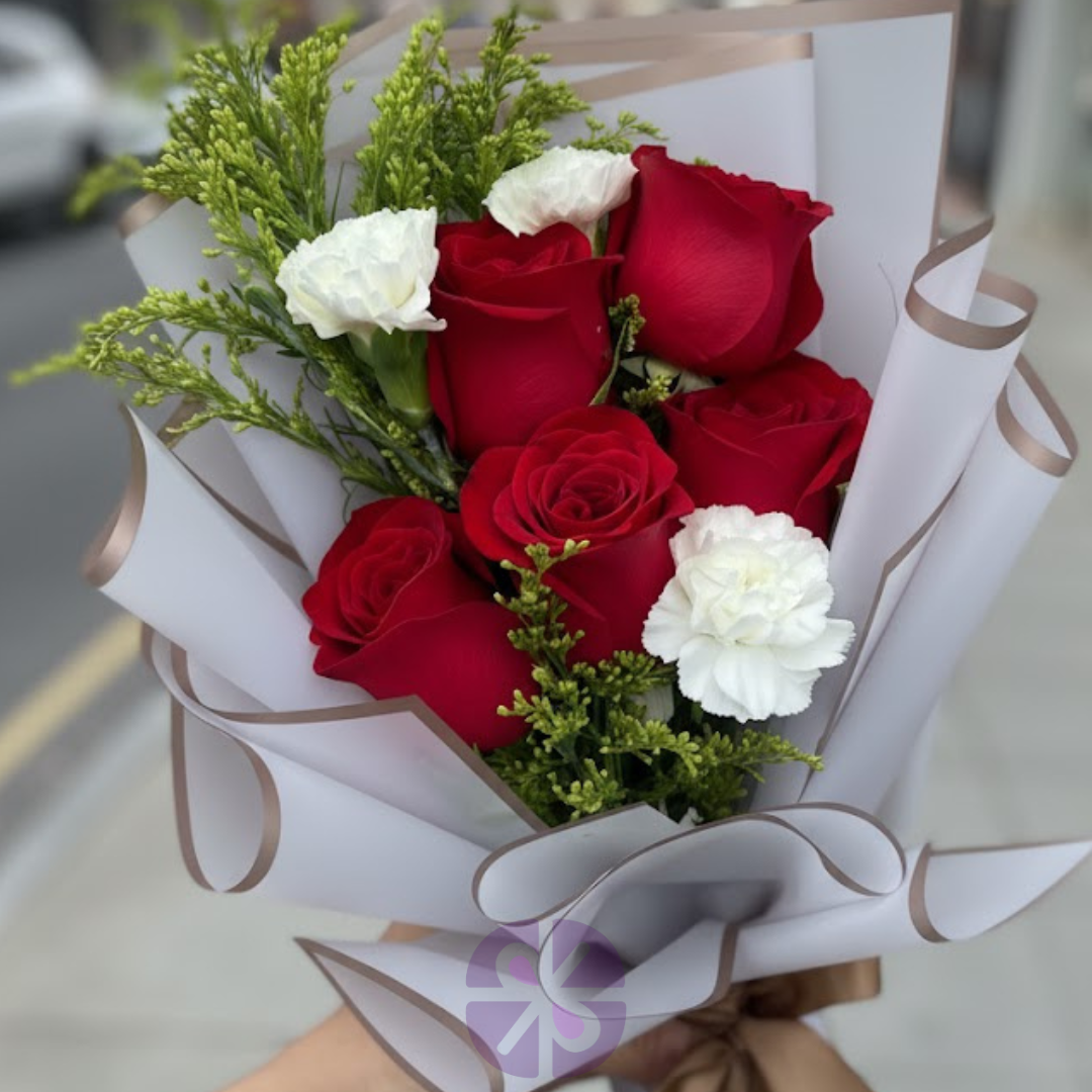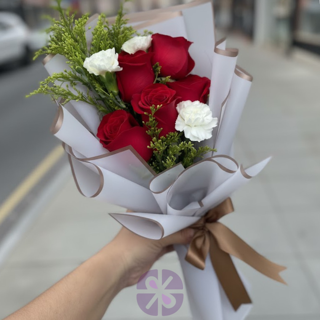 Classic Passion Red Rose & White Carnation Hand Bouquet