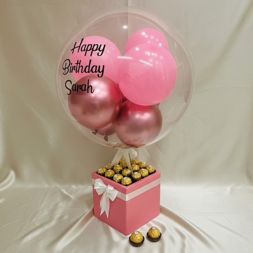 Customized Birthday Balloon Box with Ferrero Rocher & Pink Balloons