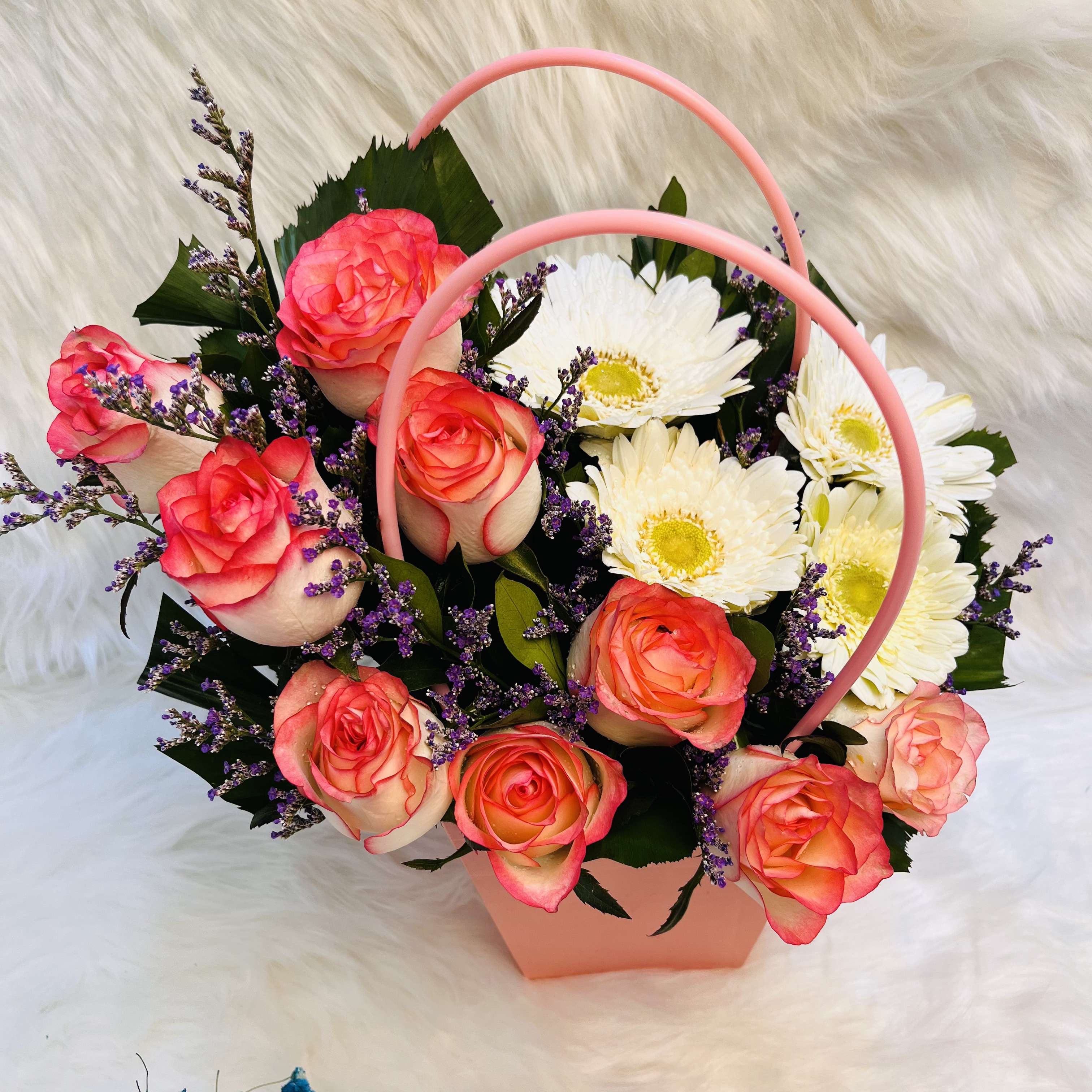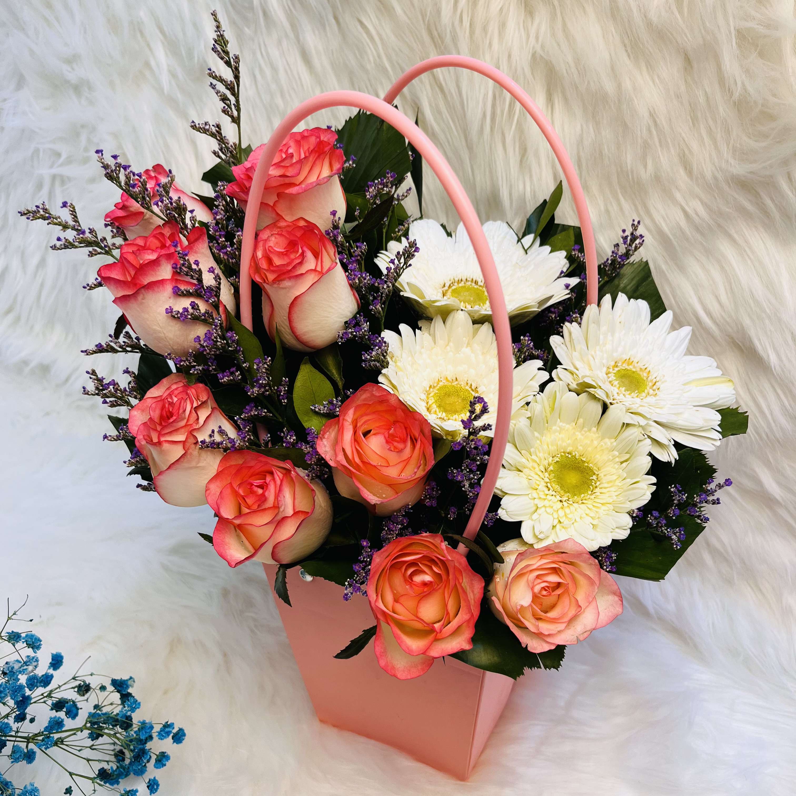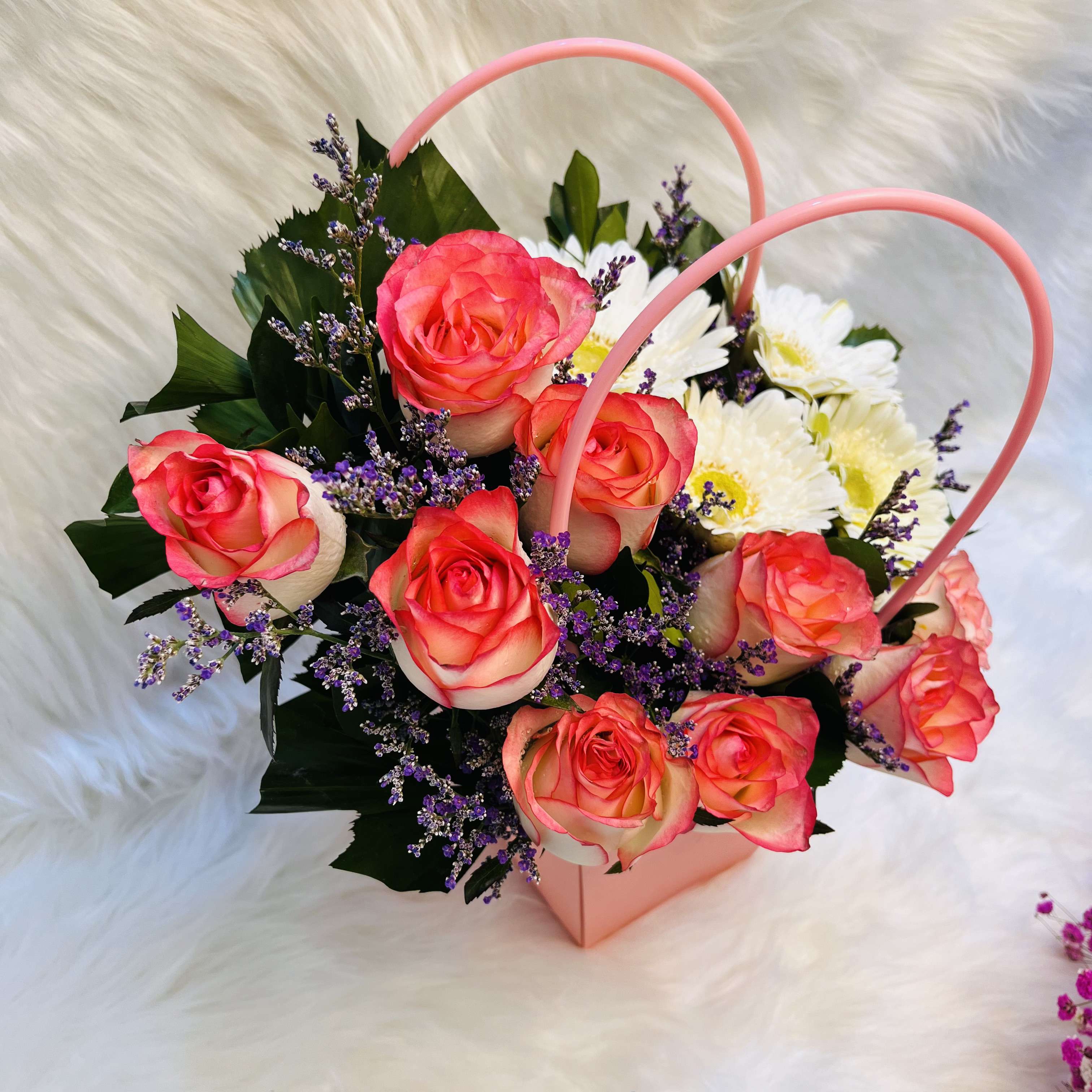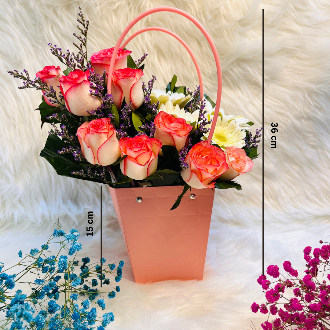 Elegant Pink Rose & White Gerbera in Handy Pink Gift Box