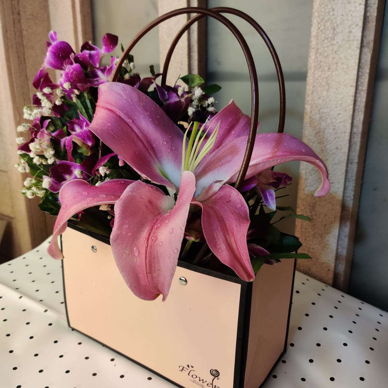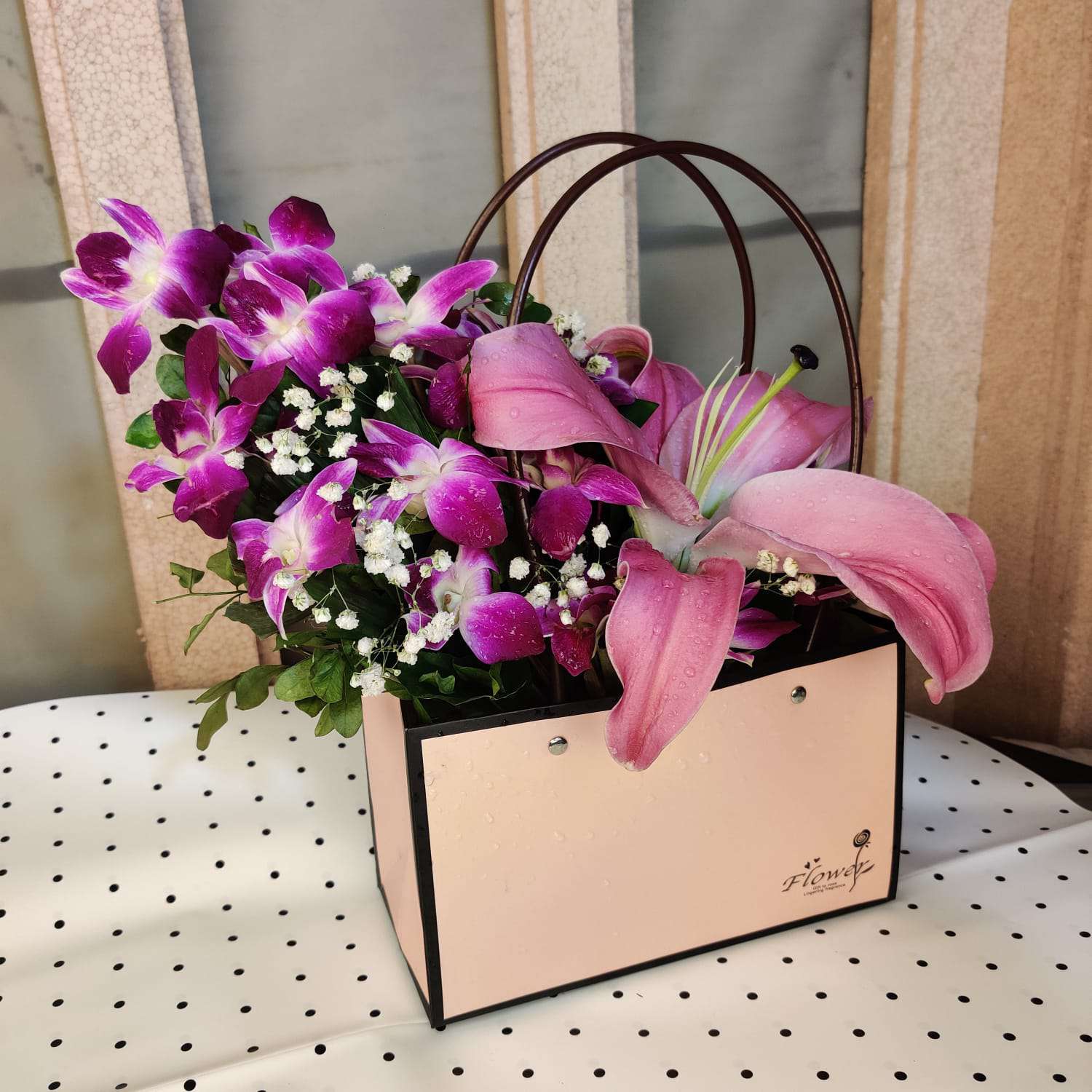 Exotic Pink Lily & Purple Orchid Premium Gift Bag