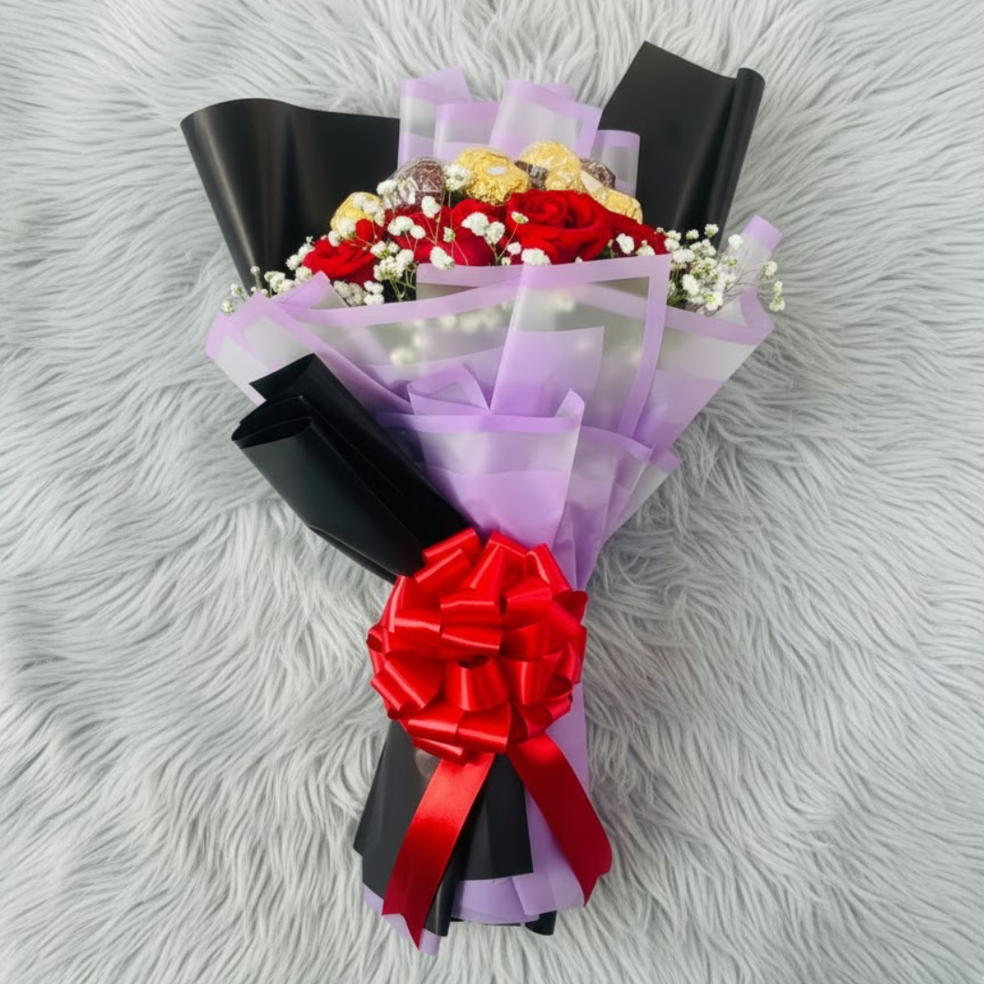 Ferrero Rocher Chocolate and Rose Heart-Melting Bouquet