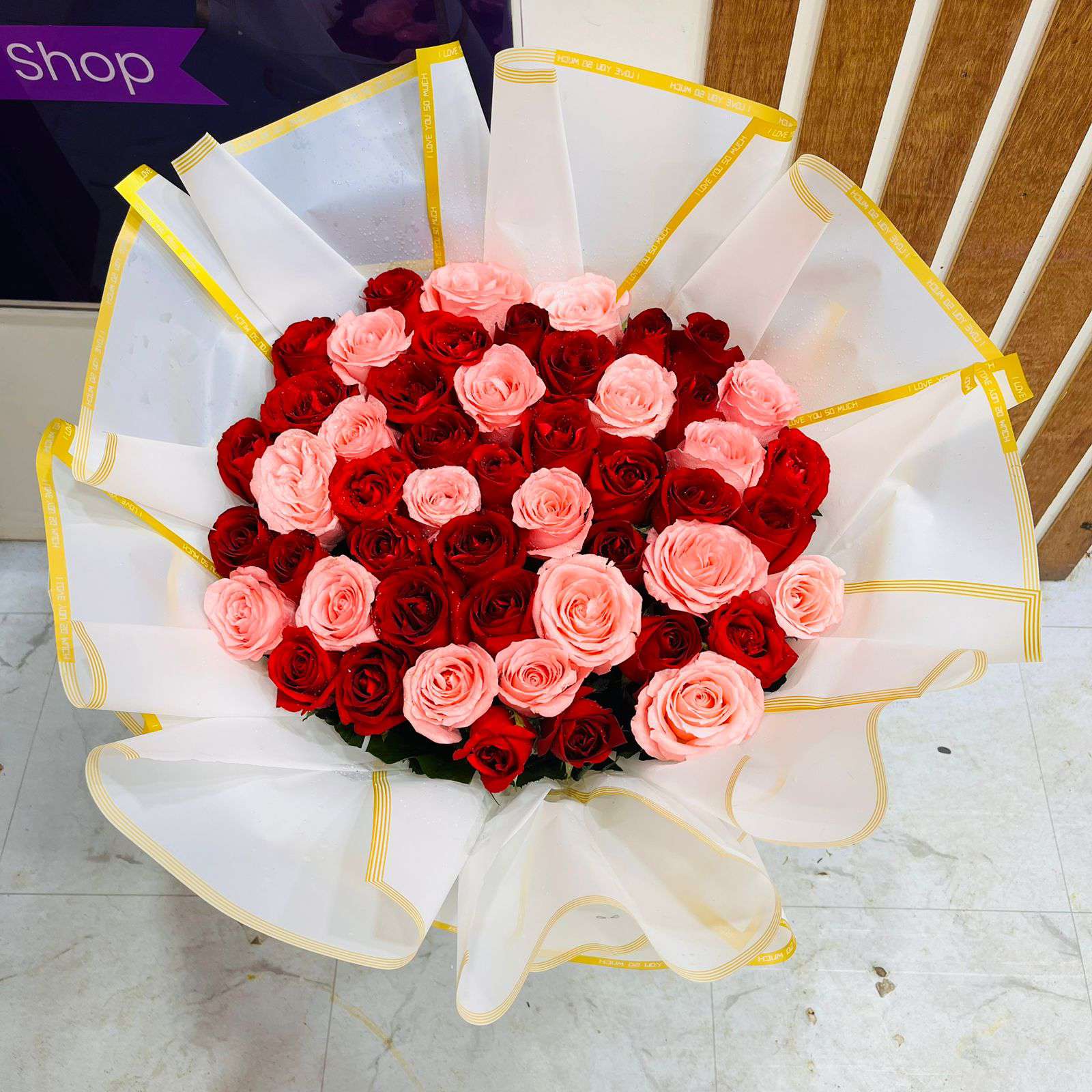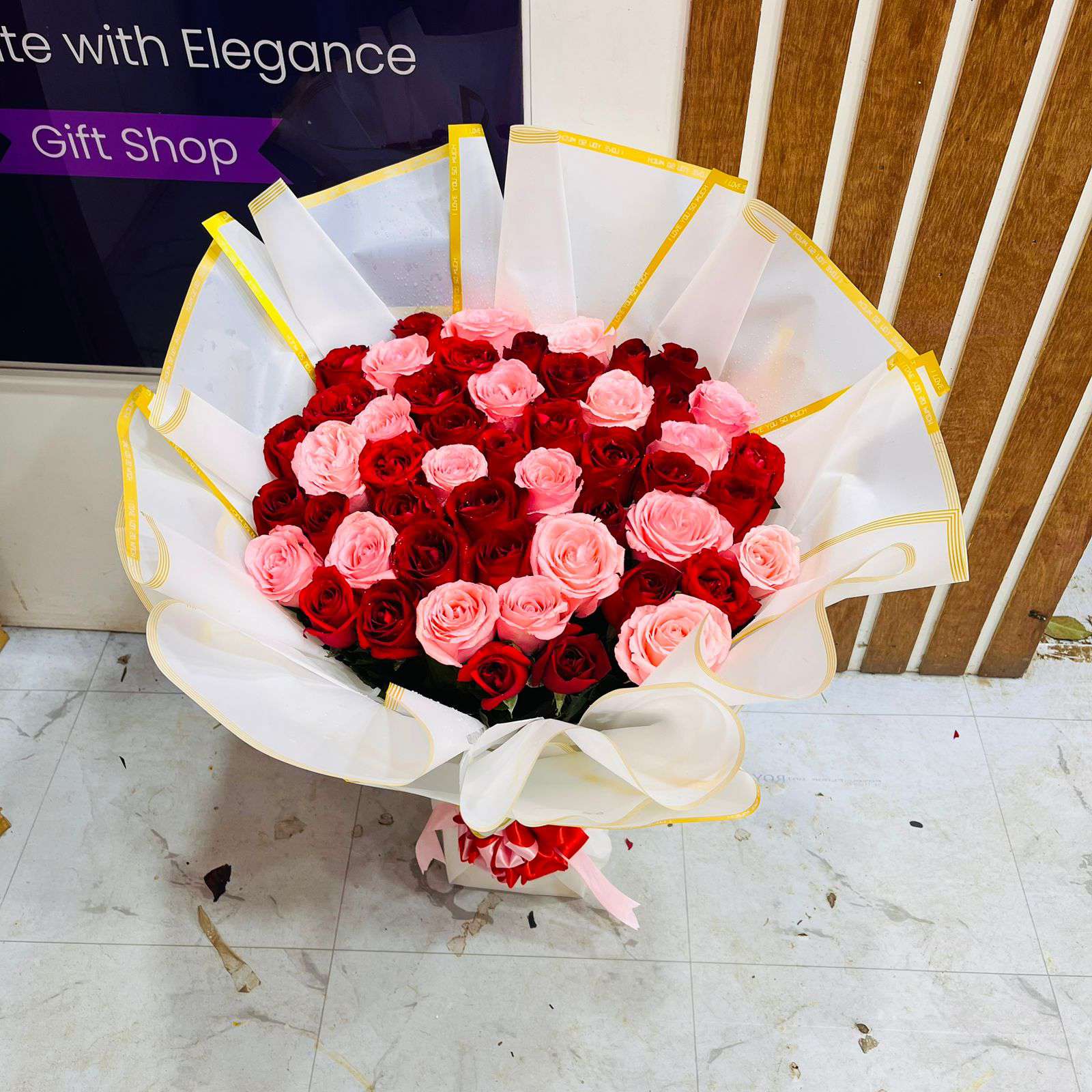 Grand Elegance Premium Red & Pink Rose Standing Bouquet