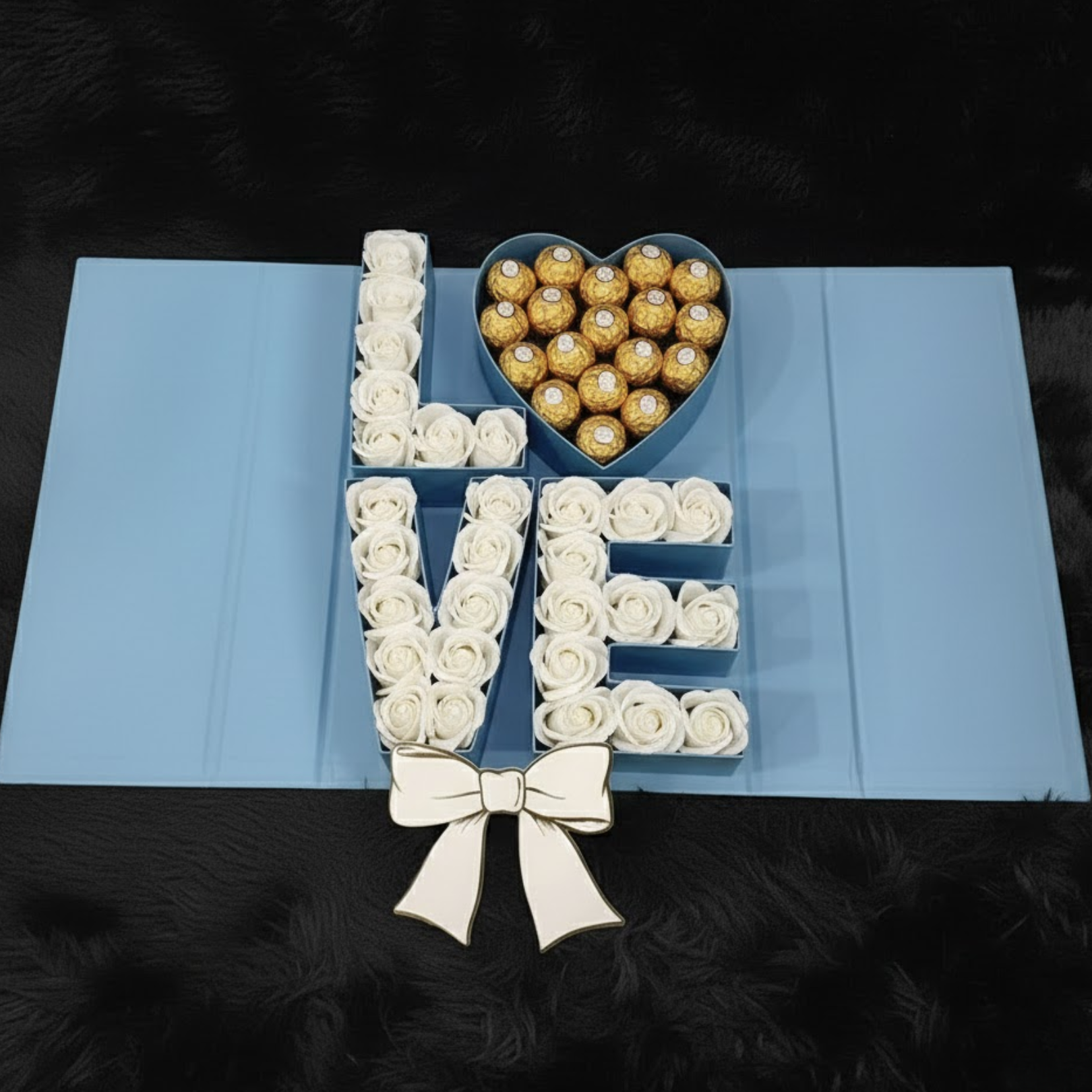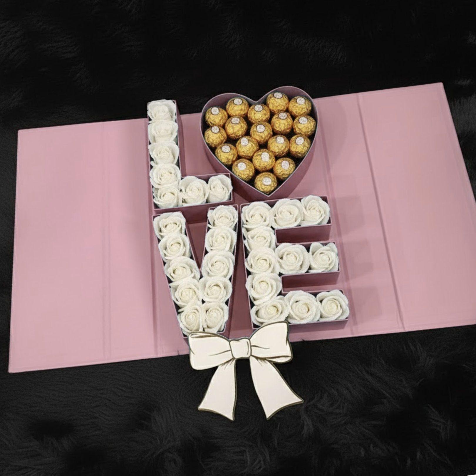 Luxury Double-Door "LOVE" Gift Box with Premium Roses and Ferrero Rocher