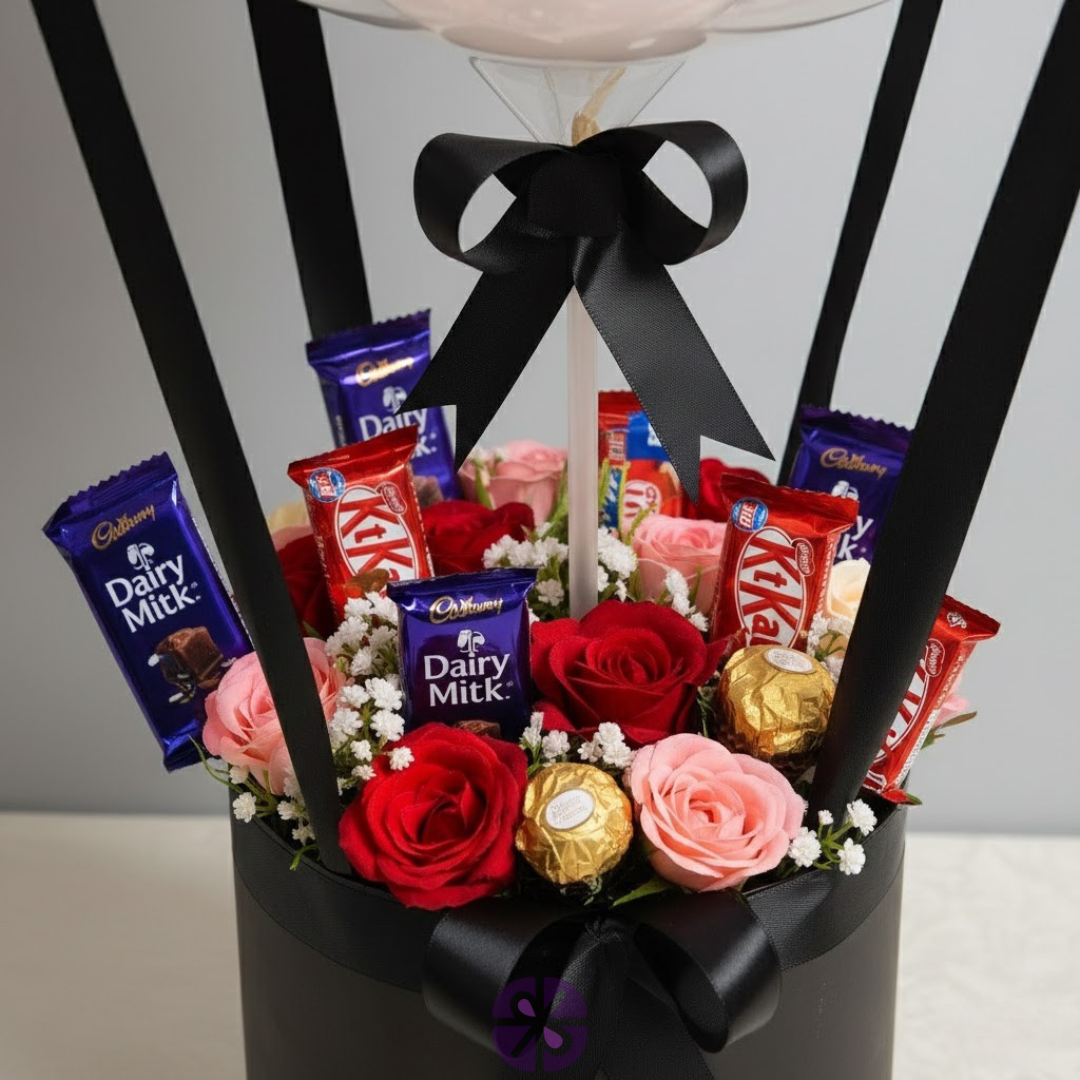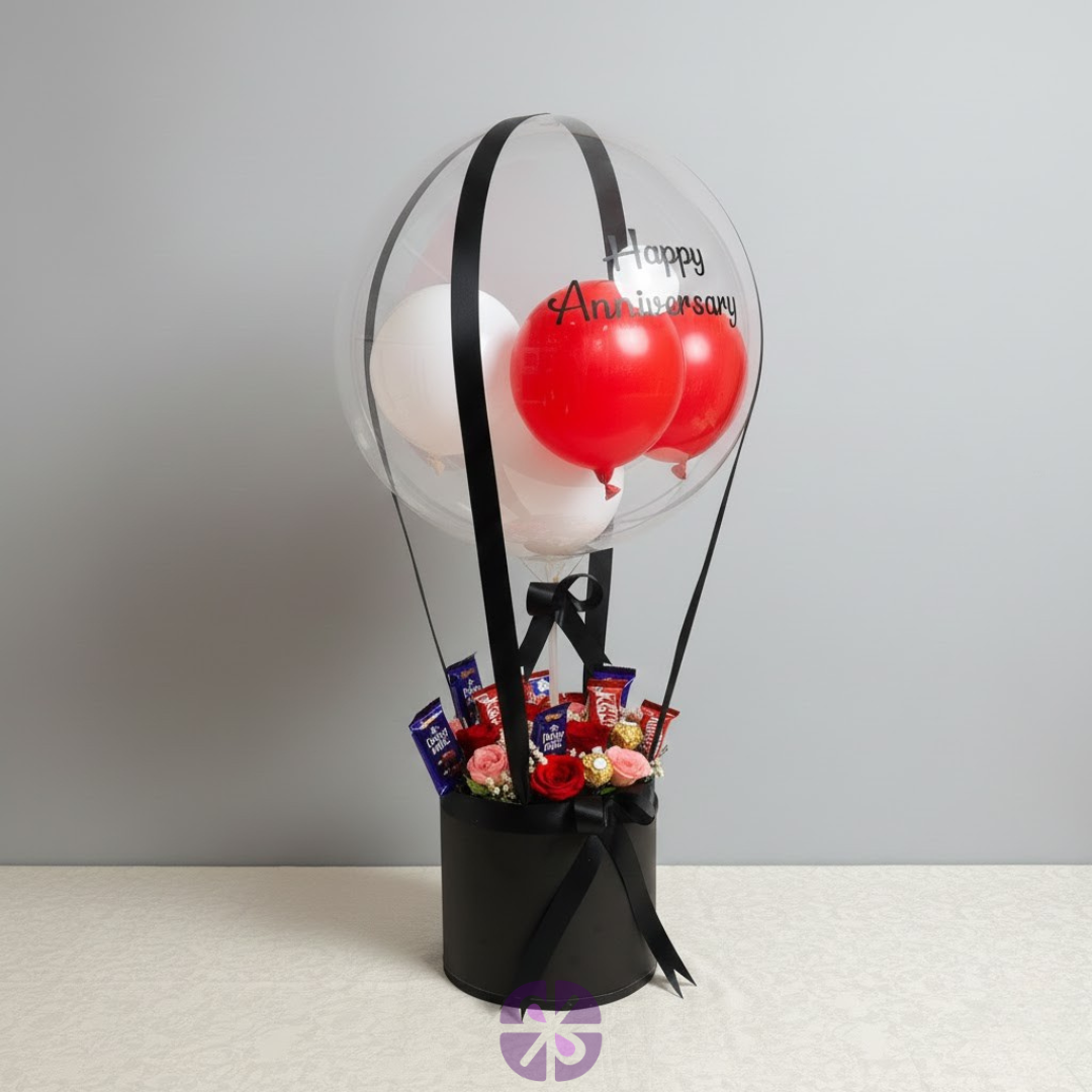 Luxury Float Hot Air Balloon Chocolate & Rose Bouquet