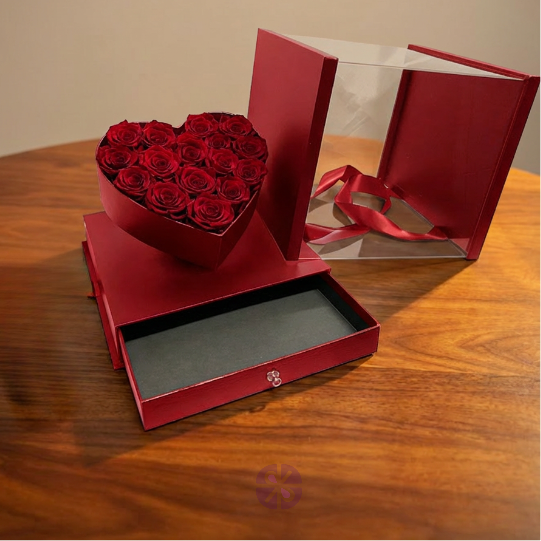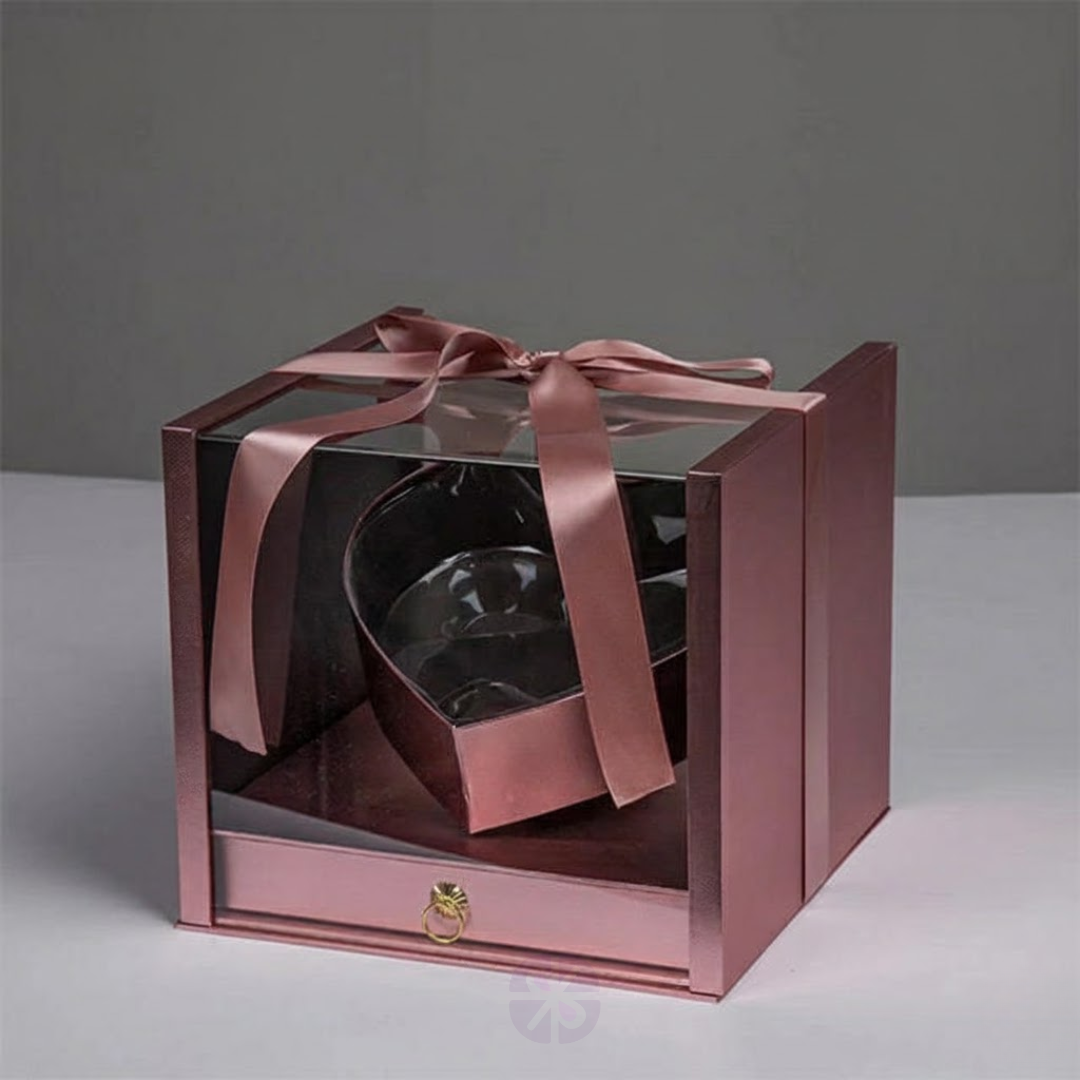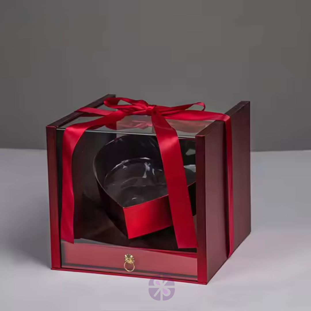 Luxury Transparent Acrylic Square Gift Box with Red Rose Heart and Hidden Drawer