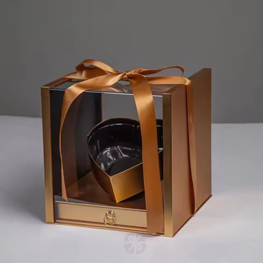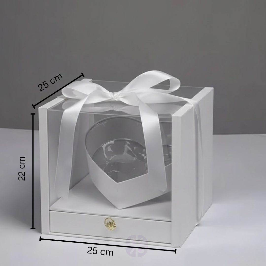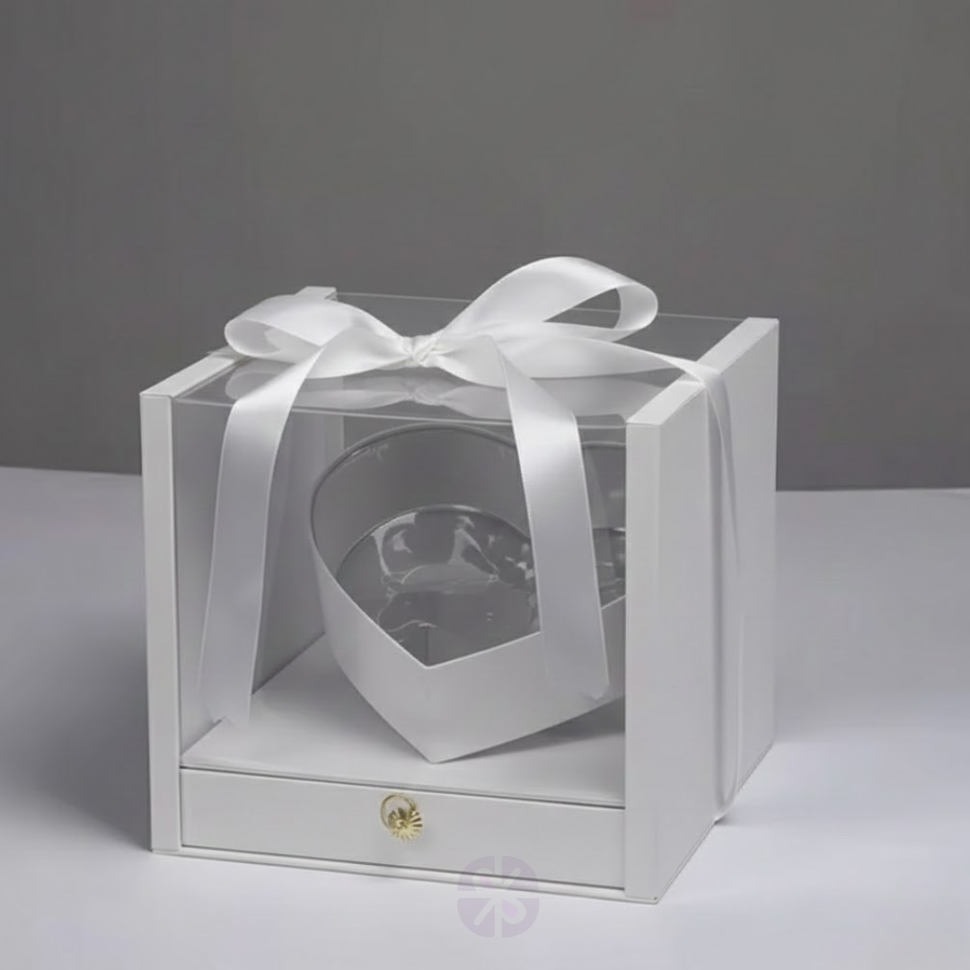 Luxury Transparent Acrylic Square Gift Box with Red Rose Heart and Hidden Drawer