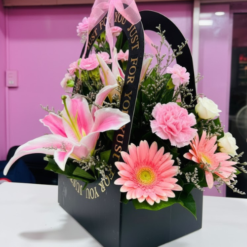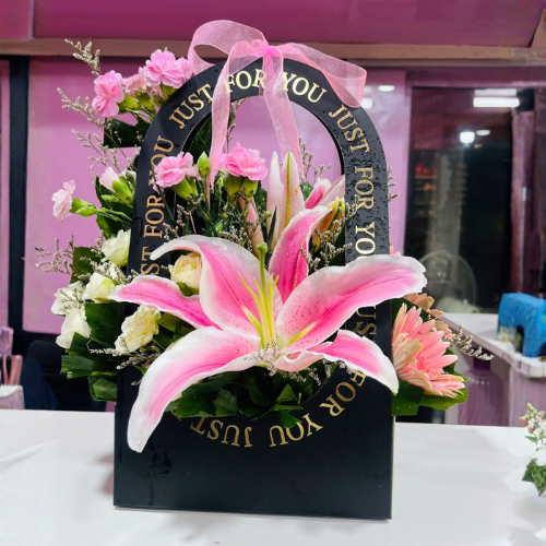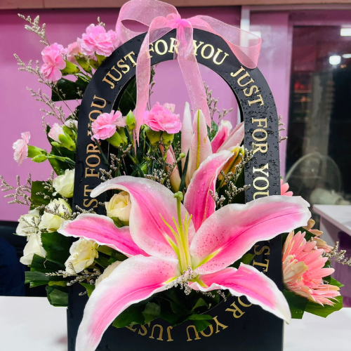 Midnight Garden Black Box Lily, Rose,Gerbera & Carnation Mix Box