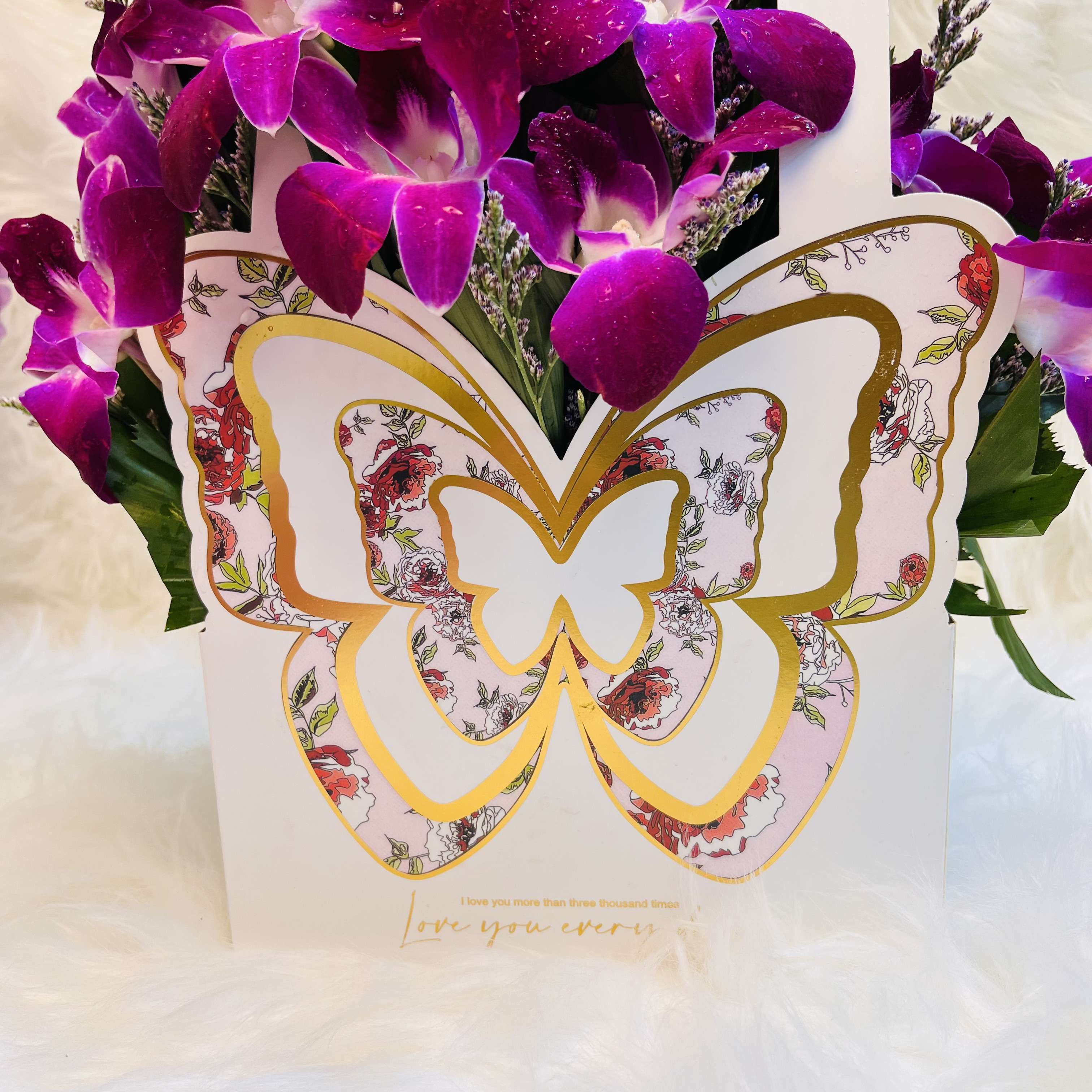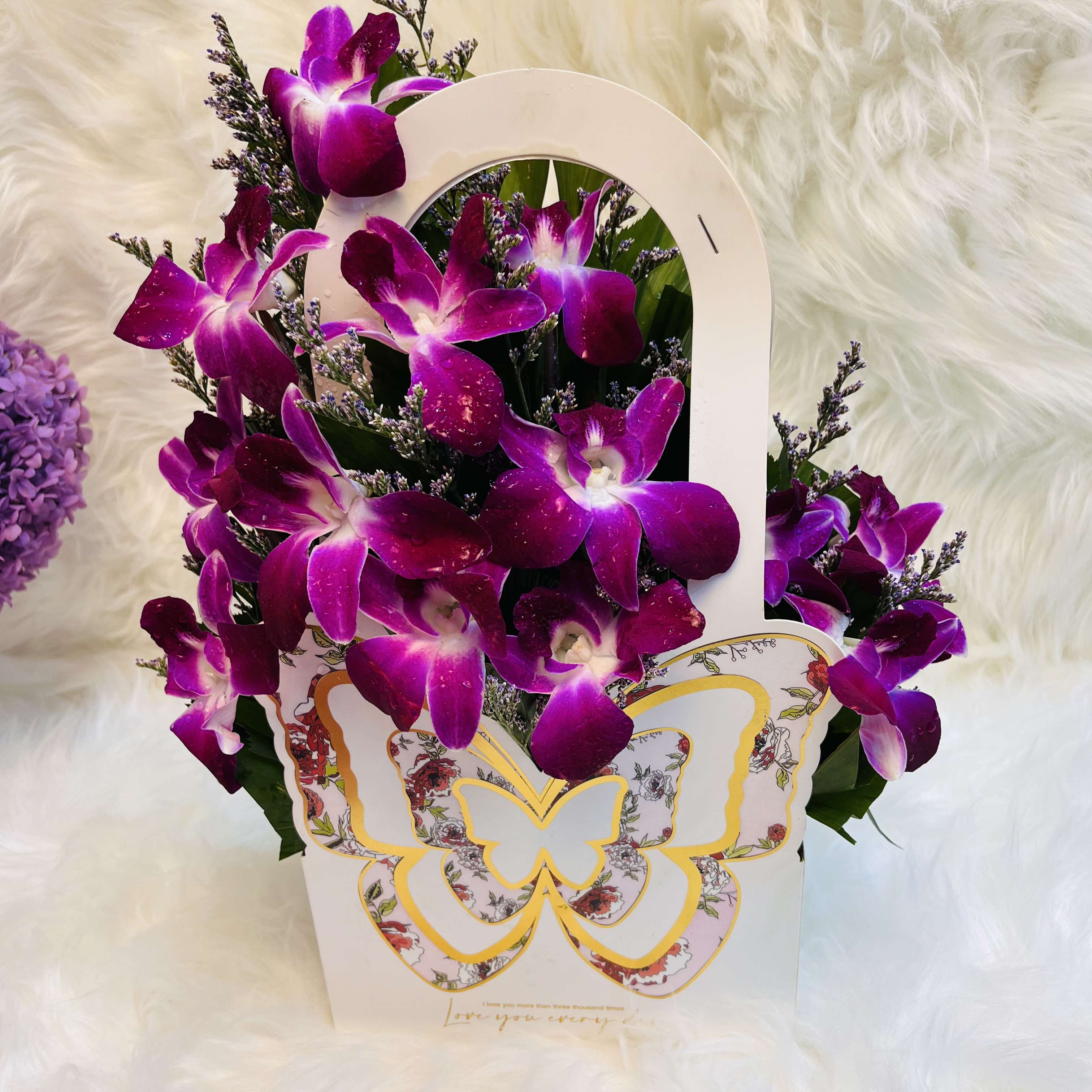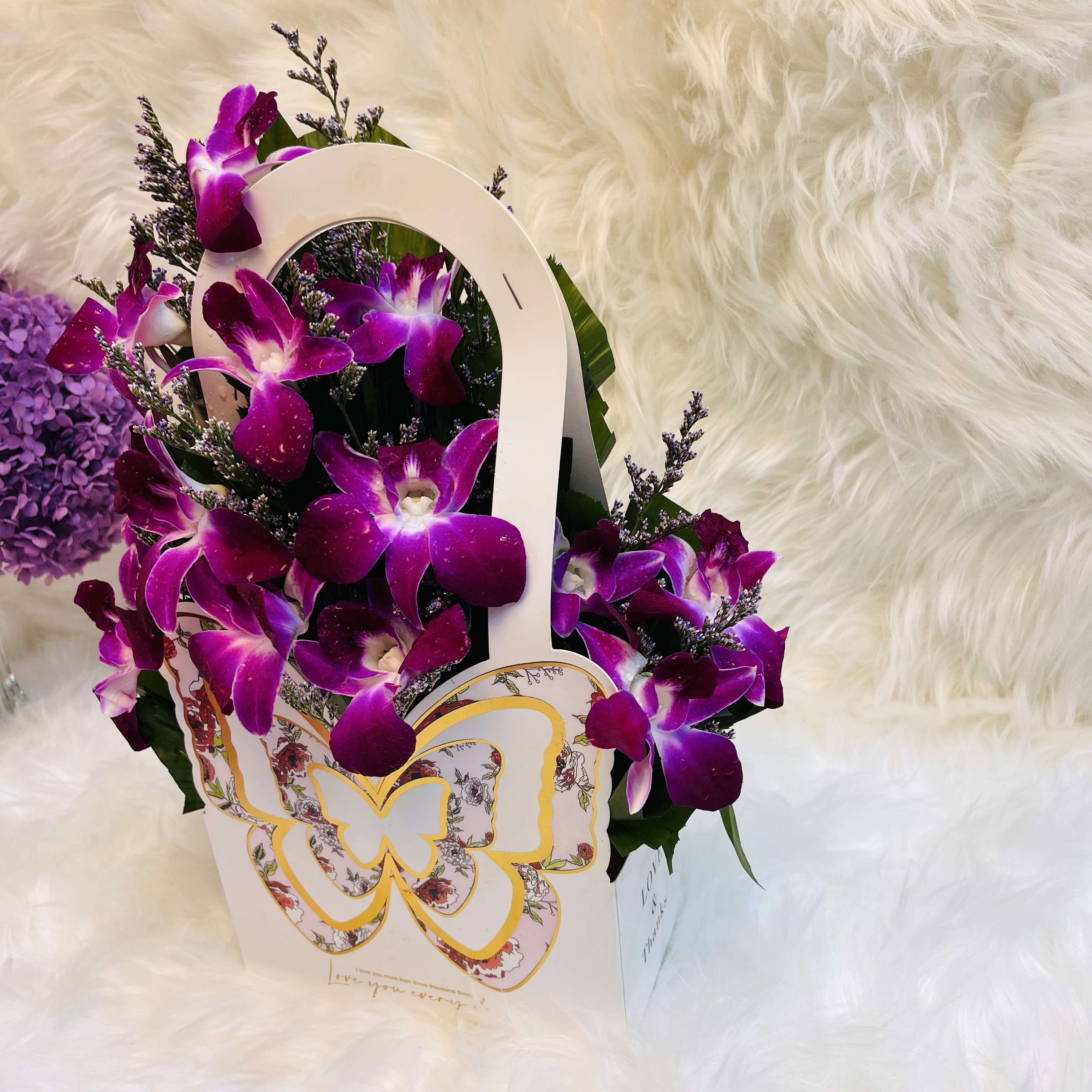 Orchid & Limu Arrangement in Butterfly Hanging Gift Bag