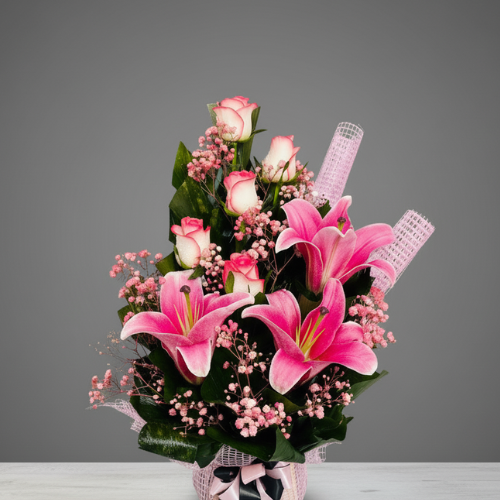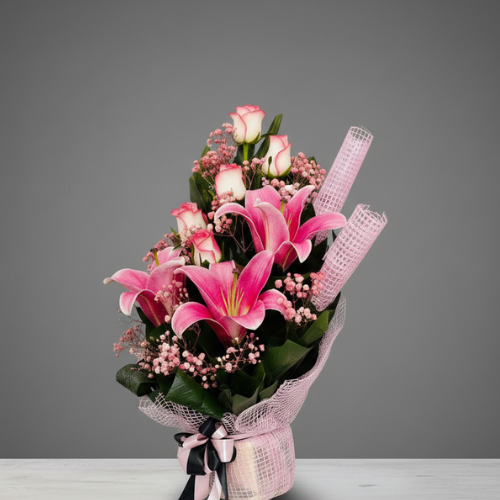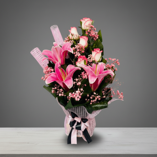 Pink Lily & Pink Shade Rose Bouquet: The Serenity Bloom