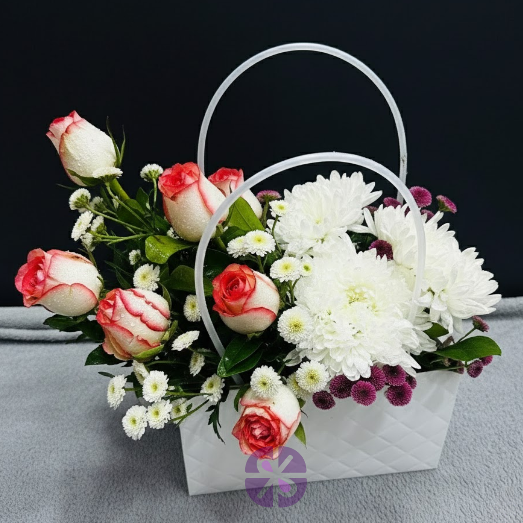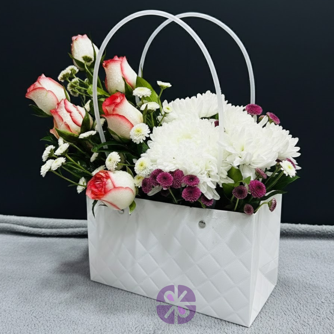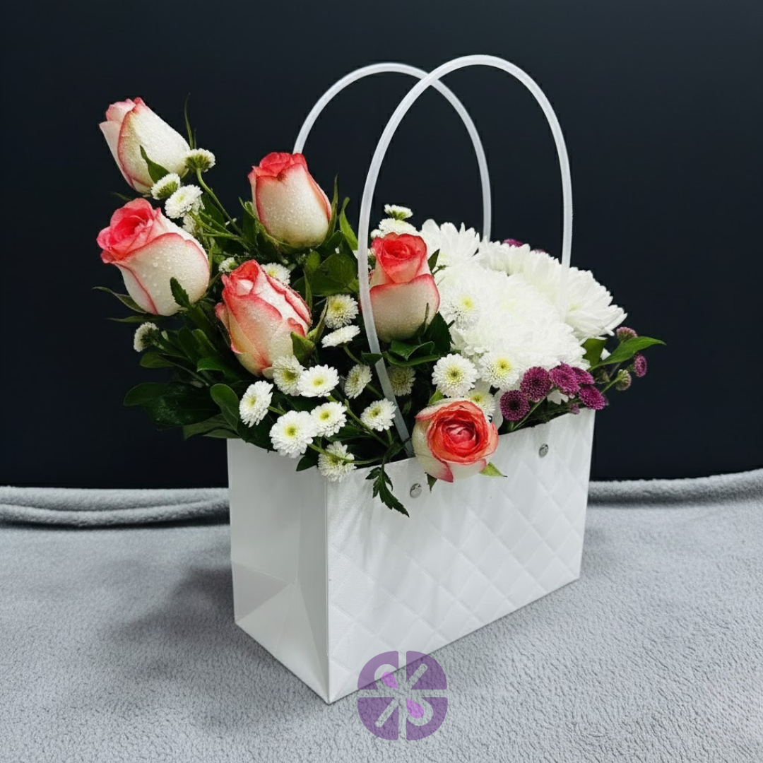 Premium Bag in Pink Rose & Mixed Mum Floral Carrier