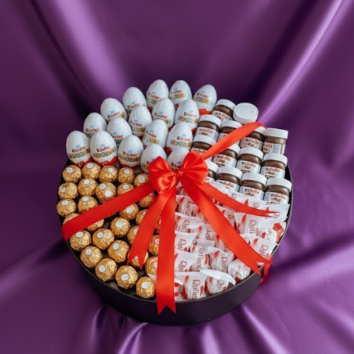 This is the ultimate treat for the serious chocolate connoisseur. Our 4-in-1 Deluxe Chocolate Box is a curated masterpiece, bringing together the world’s most beloved confections: Kinder Eggs, Nutella jars, golden Ferrero Rocher, and creamy Raffaello.