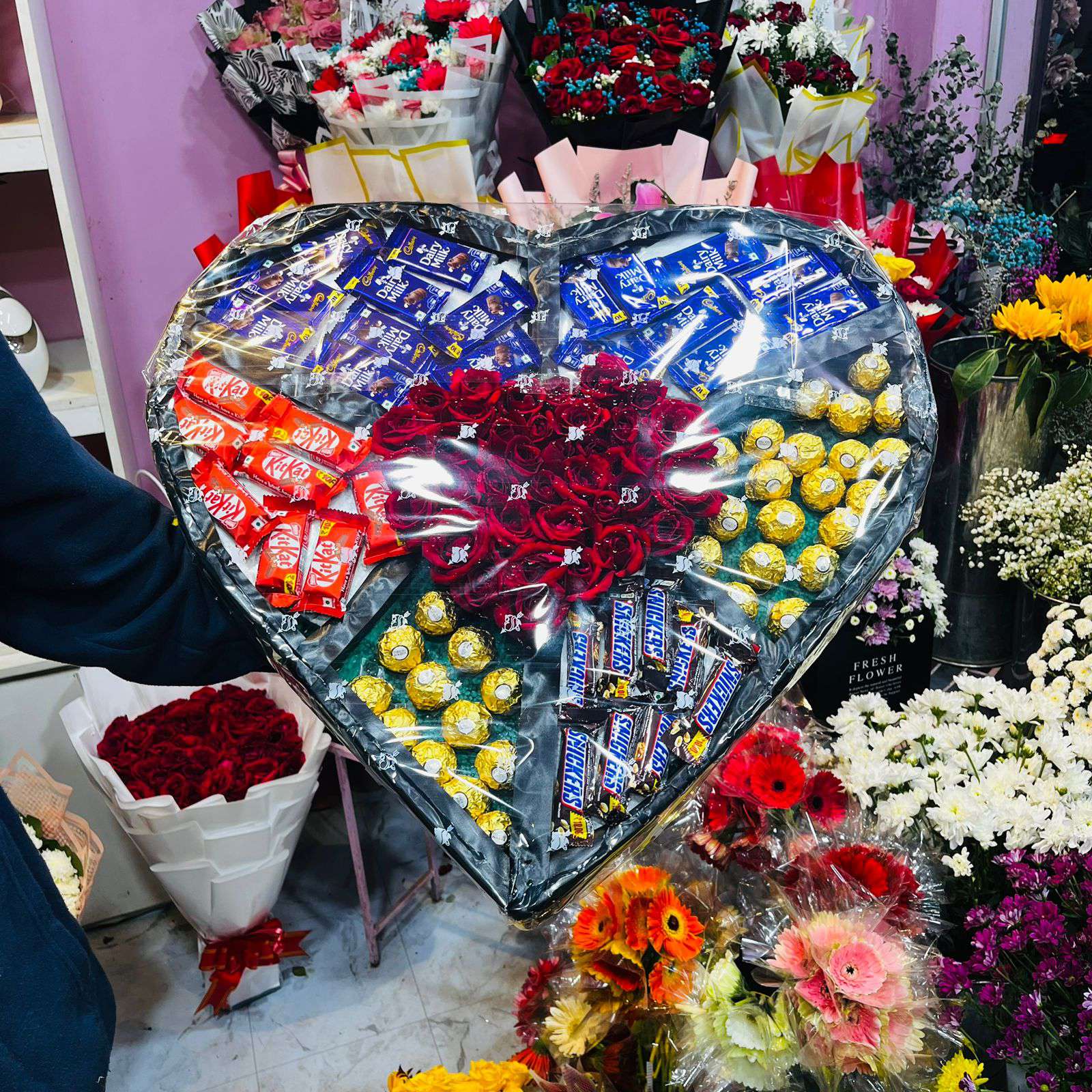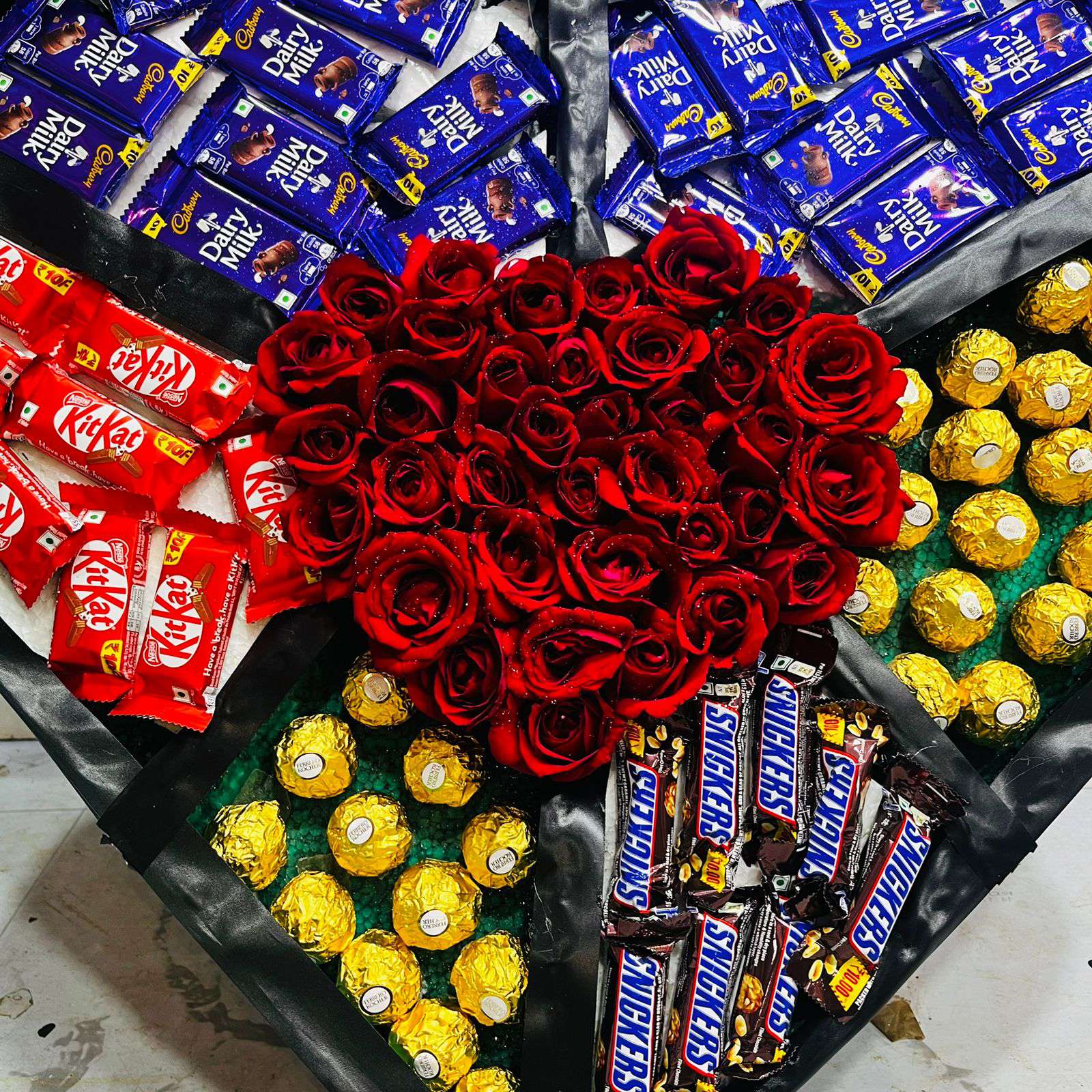 Premium Red Rose & Mixed Chocolate Heart Shape Gift Box