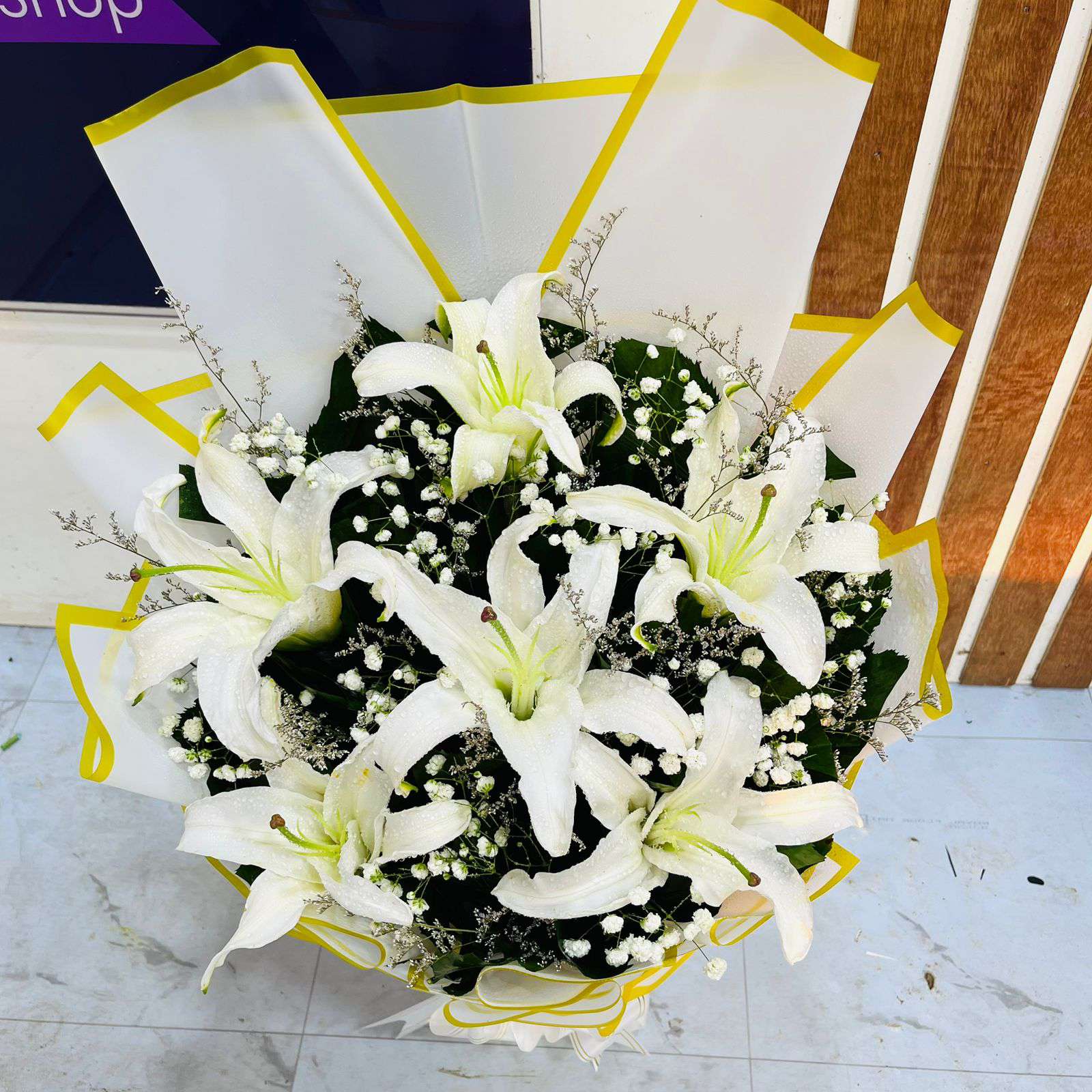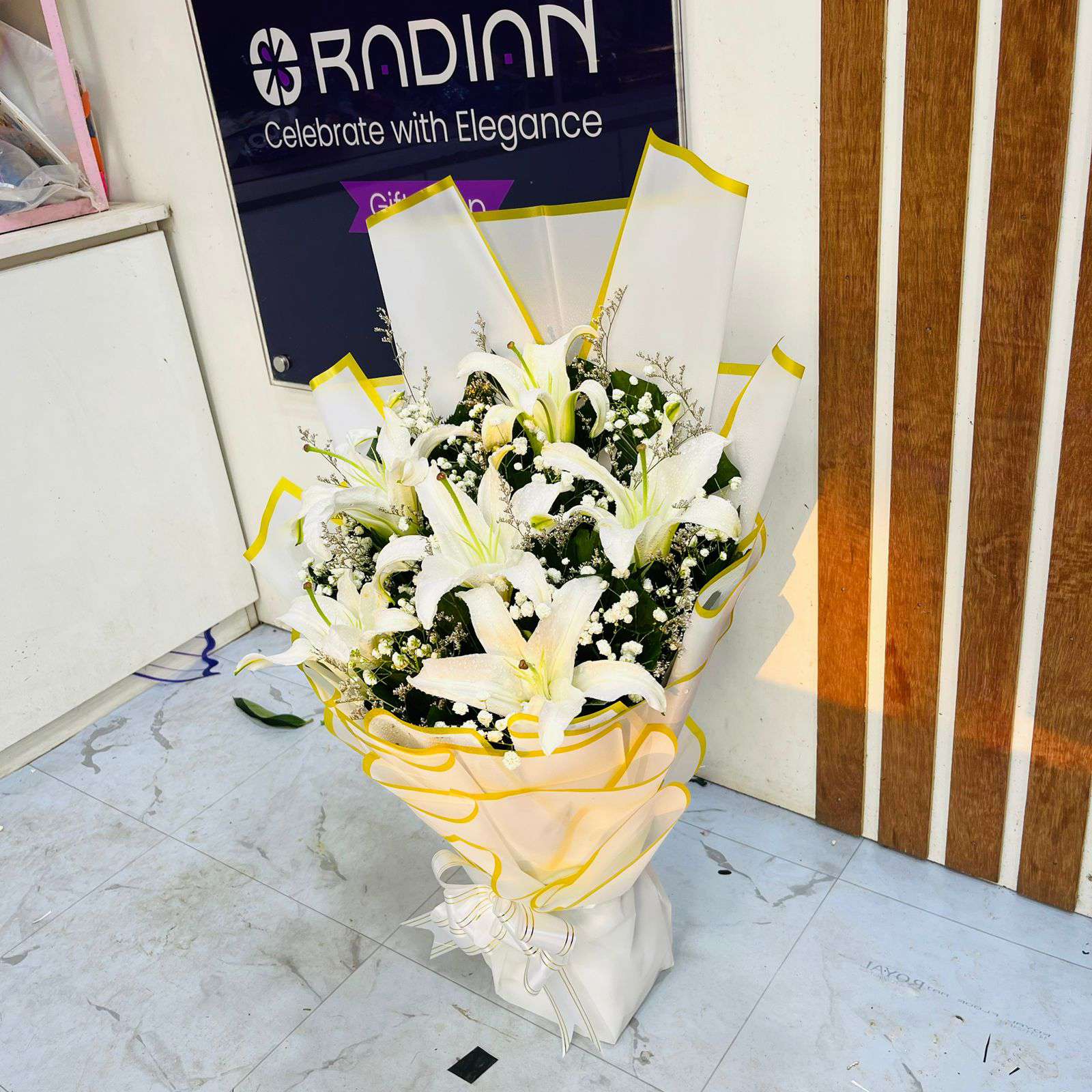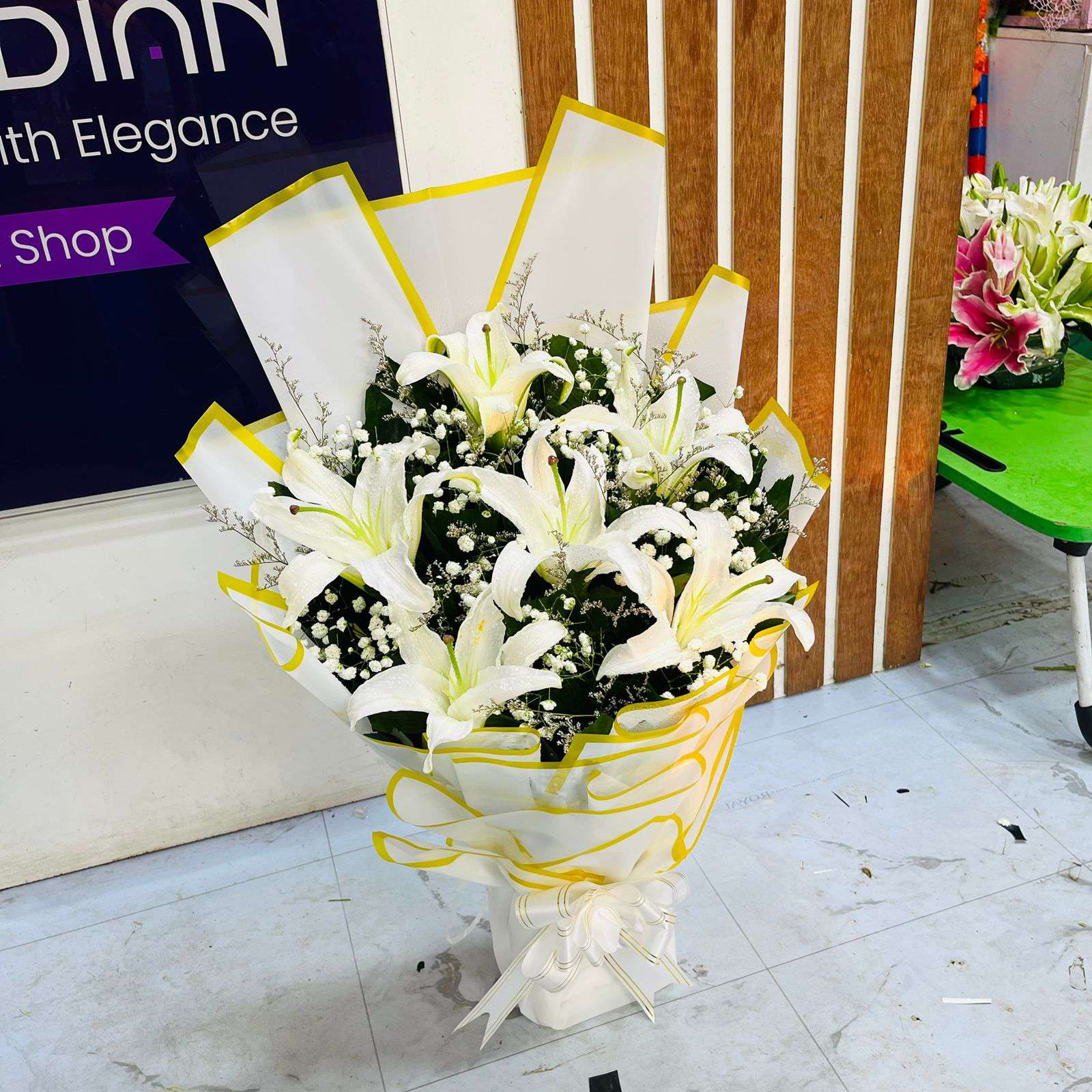 Purest Affection White Lily and Baby's Breath Standing Bouquet