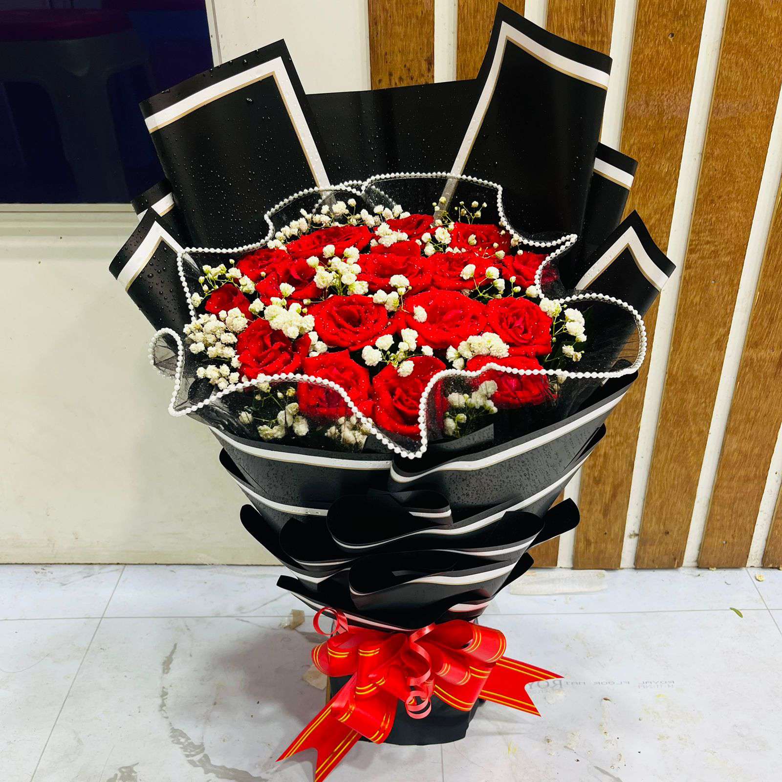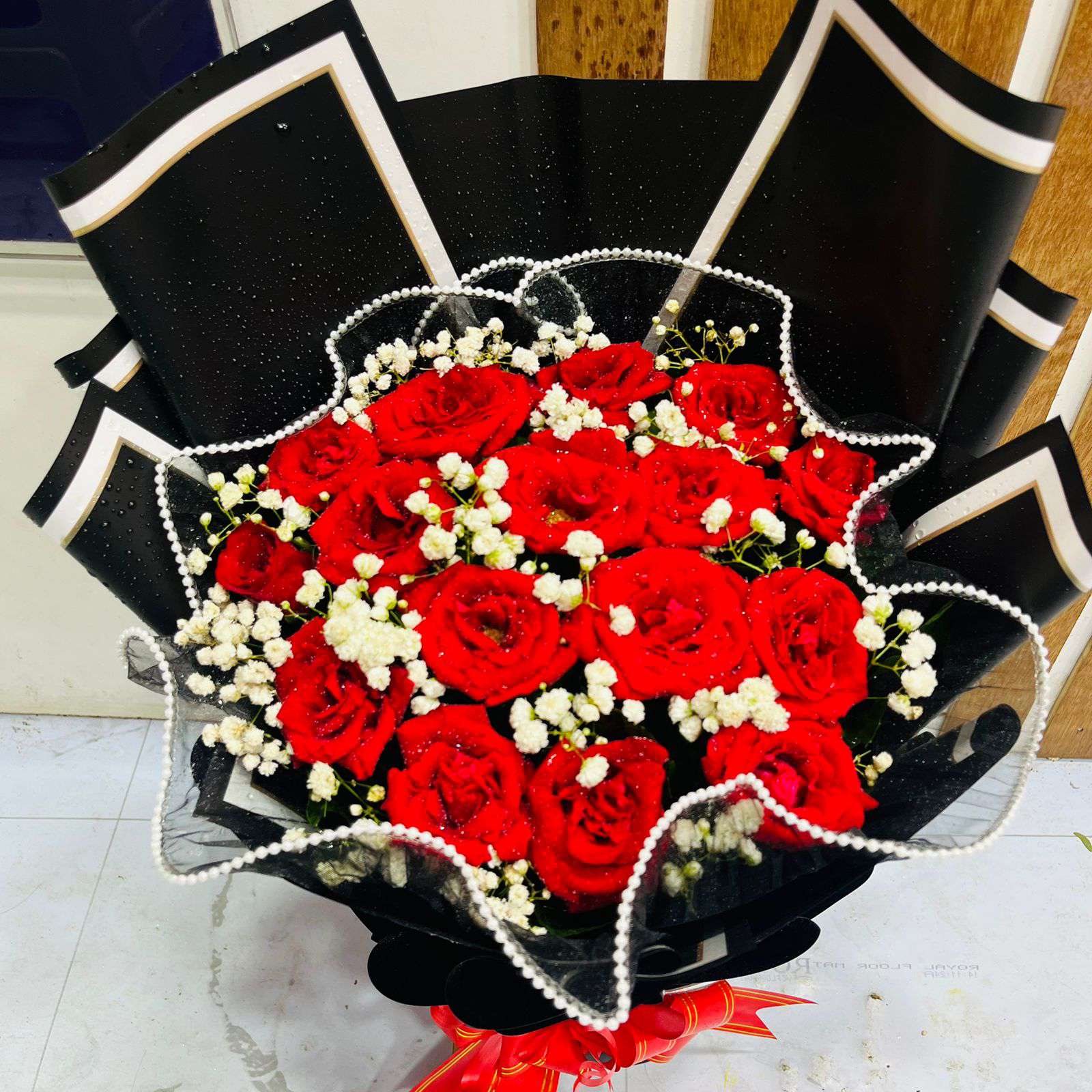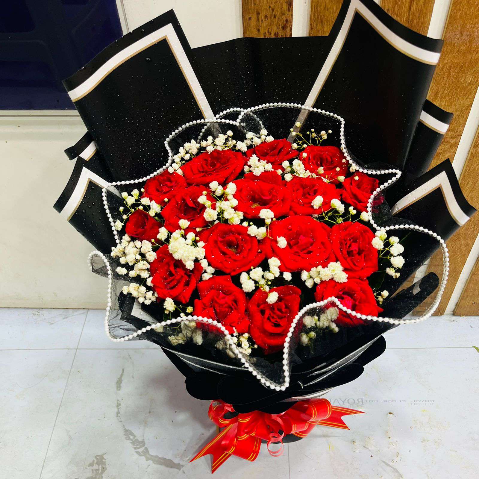 Red Classic Luxury Rose & Baby's Breath Bouquet