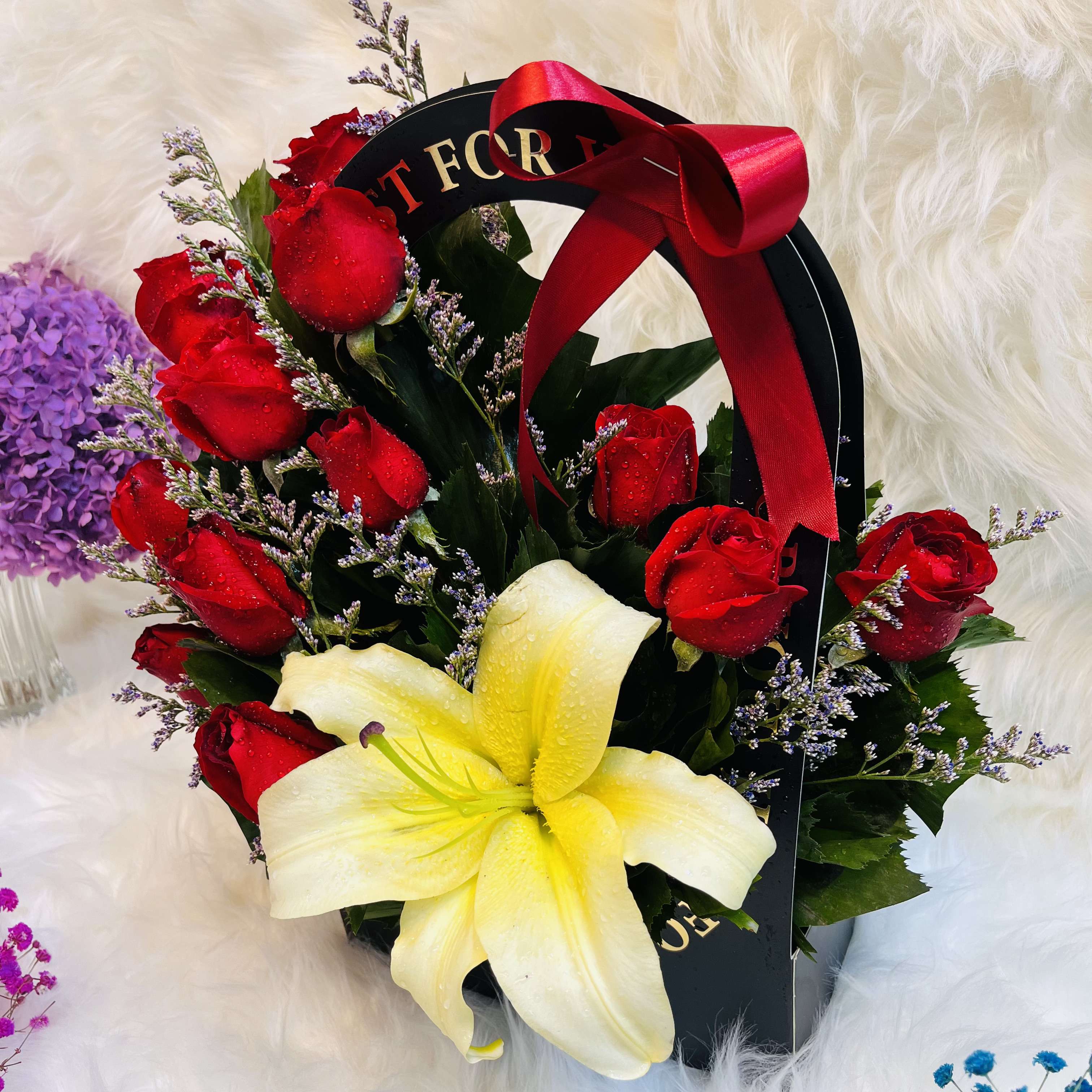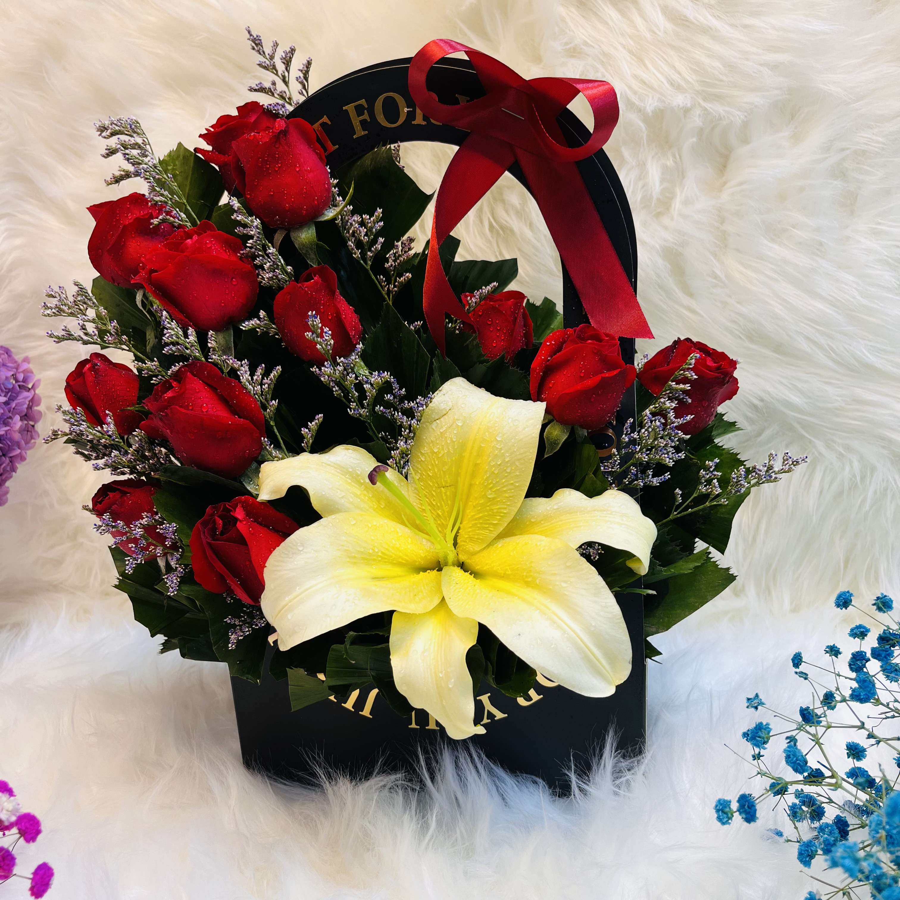 Red Rose & Yellow Lily "Just For You" Floral Gift Bag
