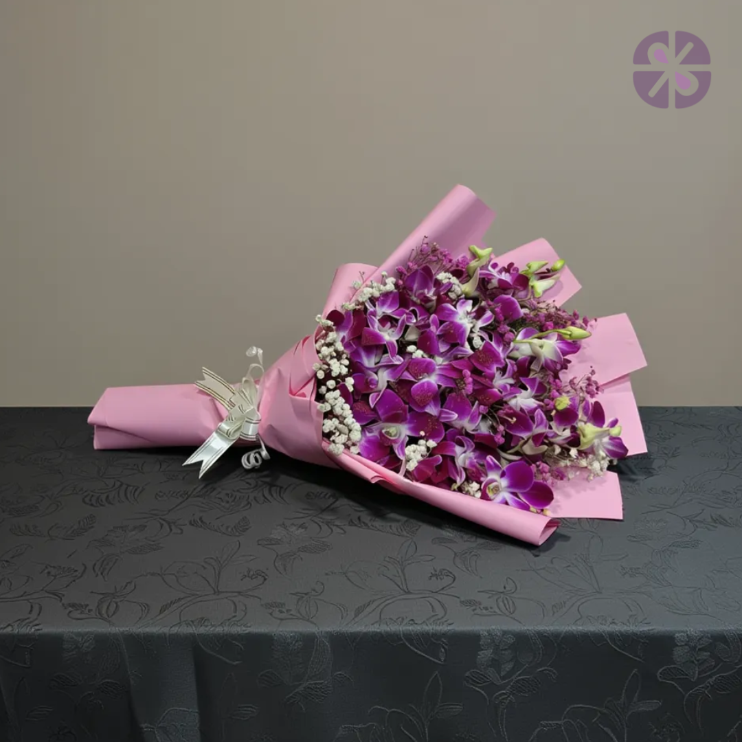 Royal Charm Fresh Purple Orchid and Baby's Breath Bouquet