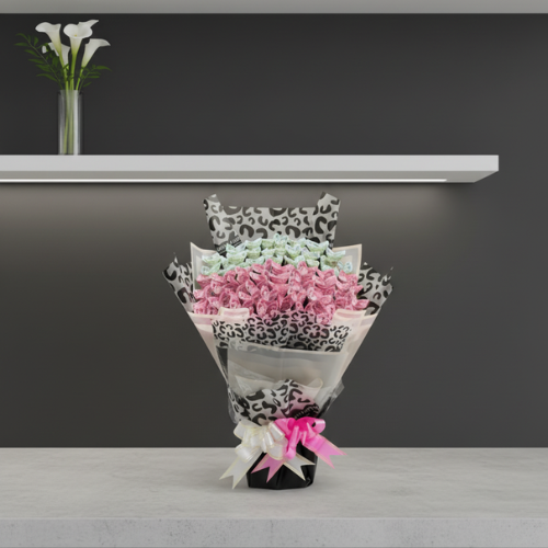 There is no better gift to surprise your loved one than a Money Bouquet. We keep the process of creating this extraordinary gift very simple and transparent. We only charge for the craftsmanship (labor cost) and the premium wrapping expenses required to create the bouquet. The actual value of the money or notes used inside the bouquet is entirely yours. You can choose to provide the currency notes of your choice directly to us