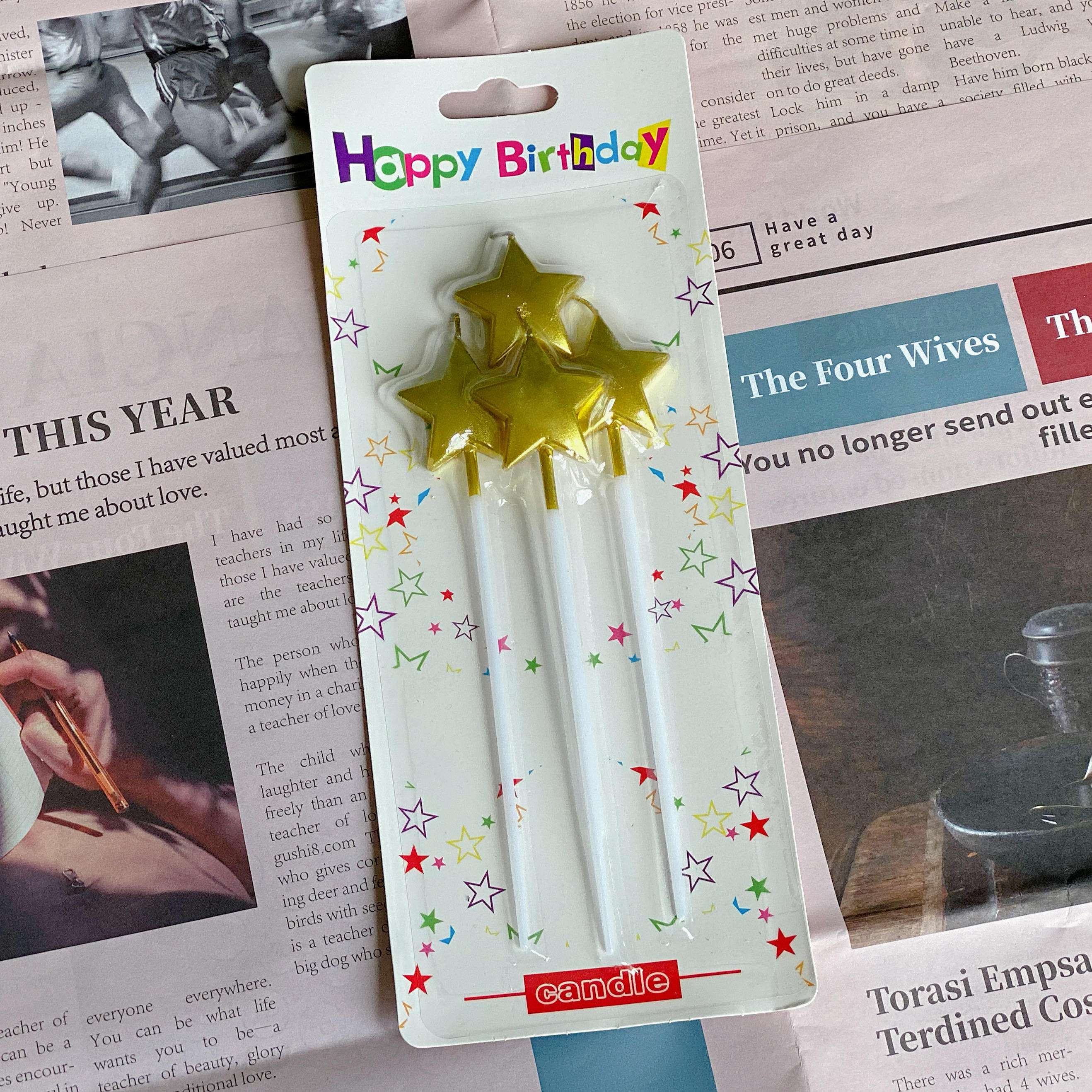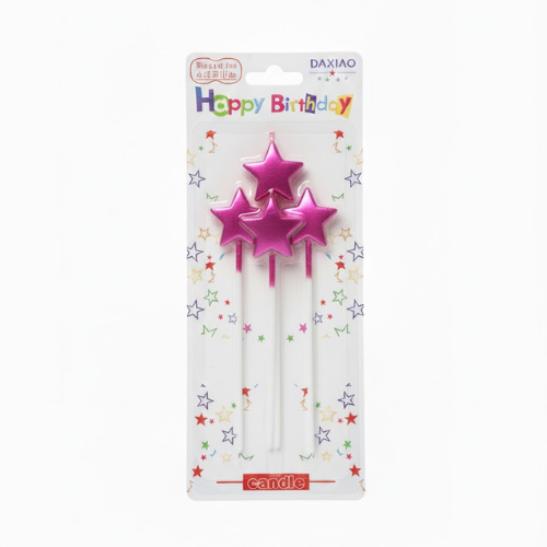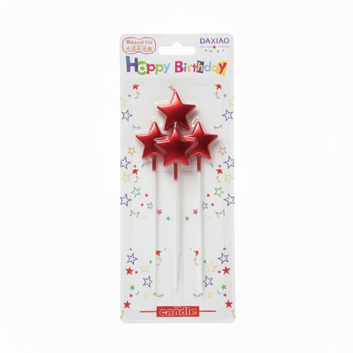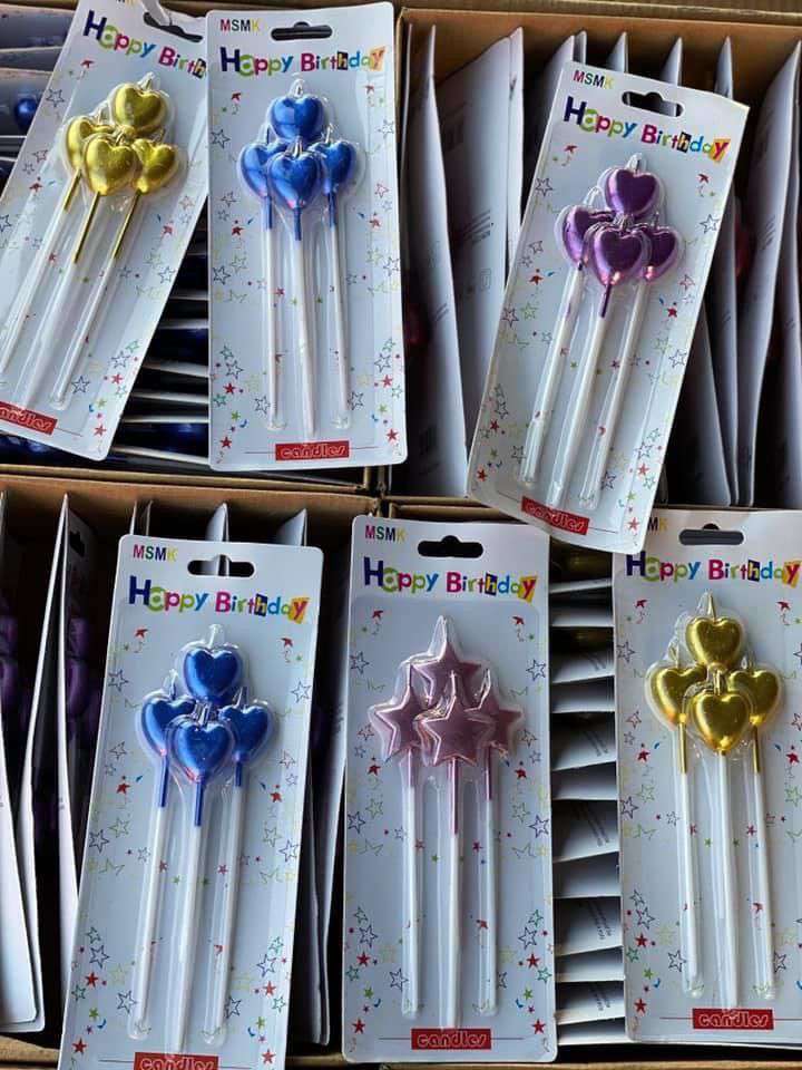 This features individual packs of Heart and Star Shaped Candles in brilliant metallic finishes (gold, red, silver, purple etc).