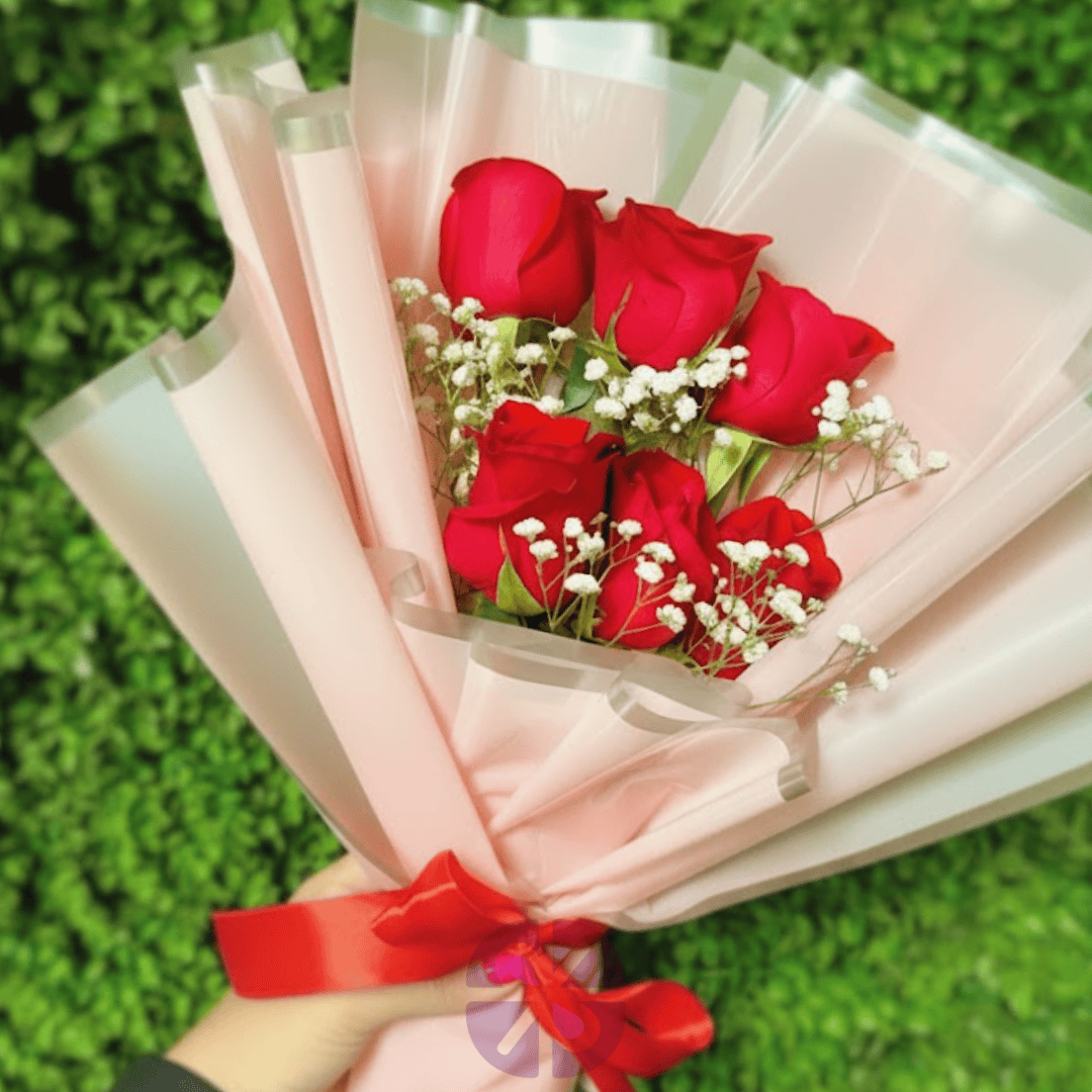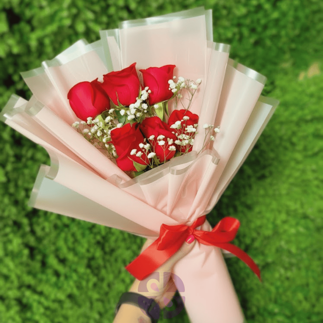 The Classic Red Roses & Baby's Breath Mini Bouquet