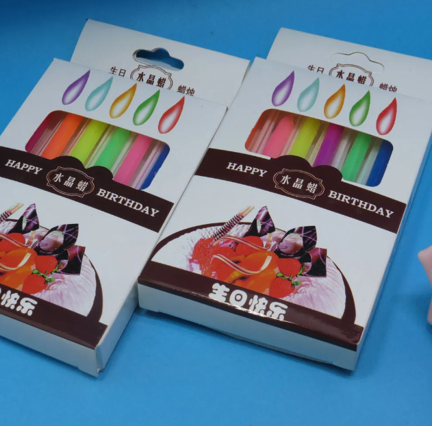 This features a classic set of approximately 12 slim birthday candles in 6 bright, distinct 'crystal' colors (red, orange, yellow, green, blue, purple). These smooth, vibrant candles are an essential party supply, designed to provide a perfect pop of traditional birthday color and illumination for any size cake. It is the ideal thoughtful gift (adapted to: essential party item) for birthdays, anniversaries, or adding a festive, simple touch to any celebration.