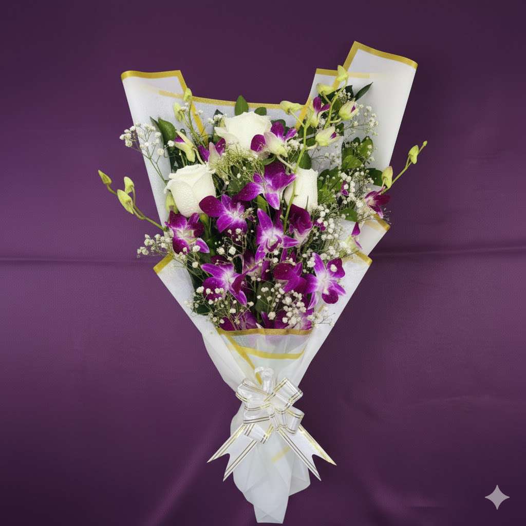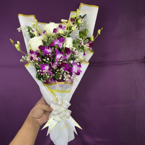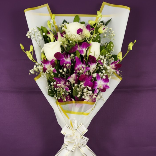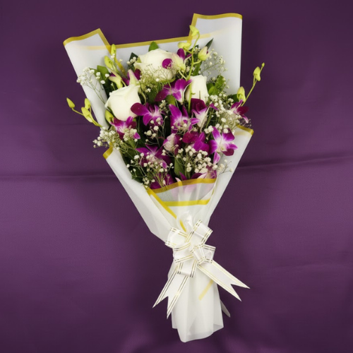 The Exotic Royal Orchid, Rose & Gypsy Bouquet