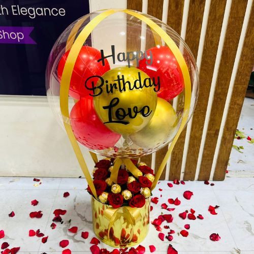 The Golden Celebration Personalized Bubble Balloon & Rose Box