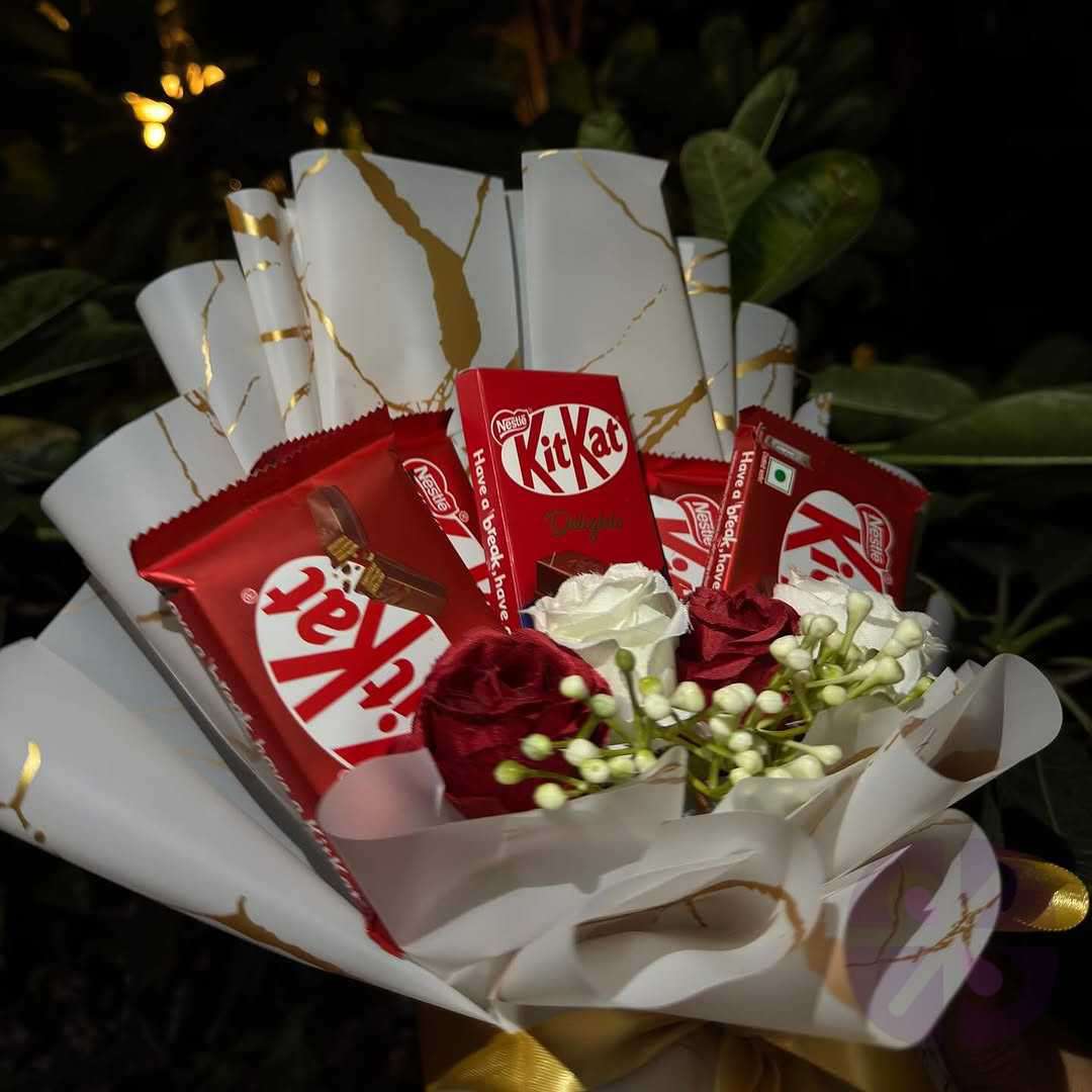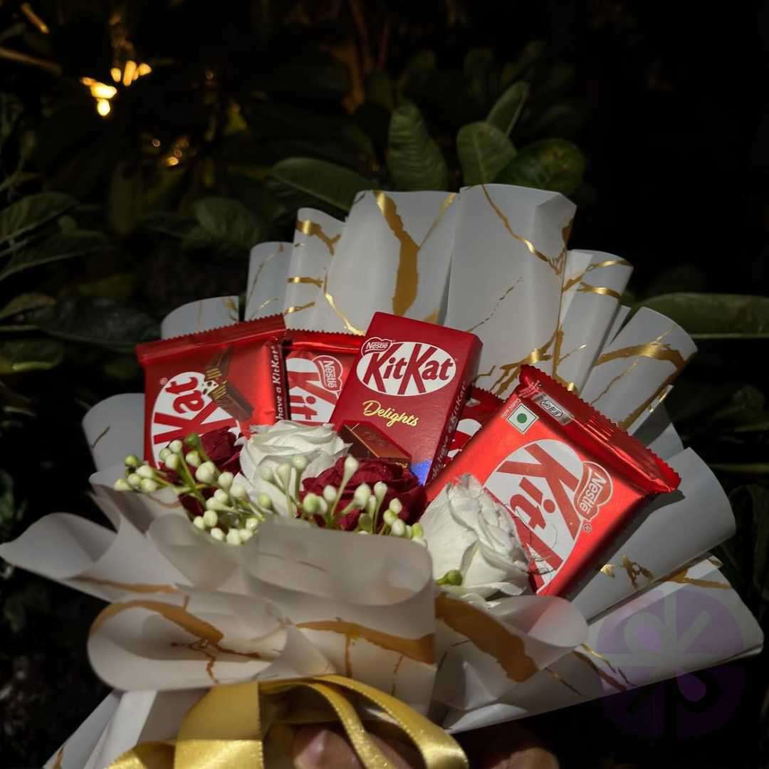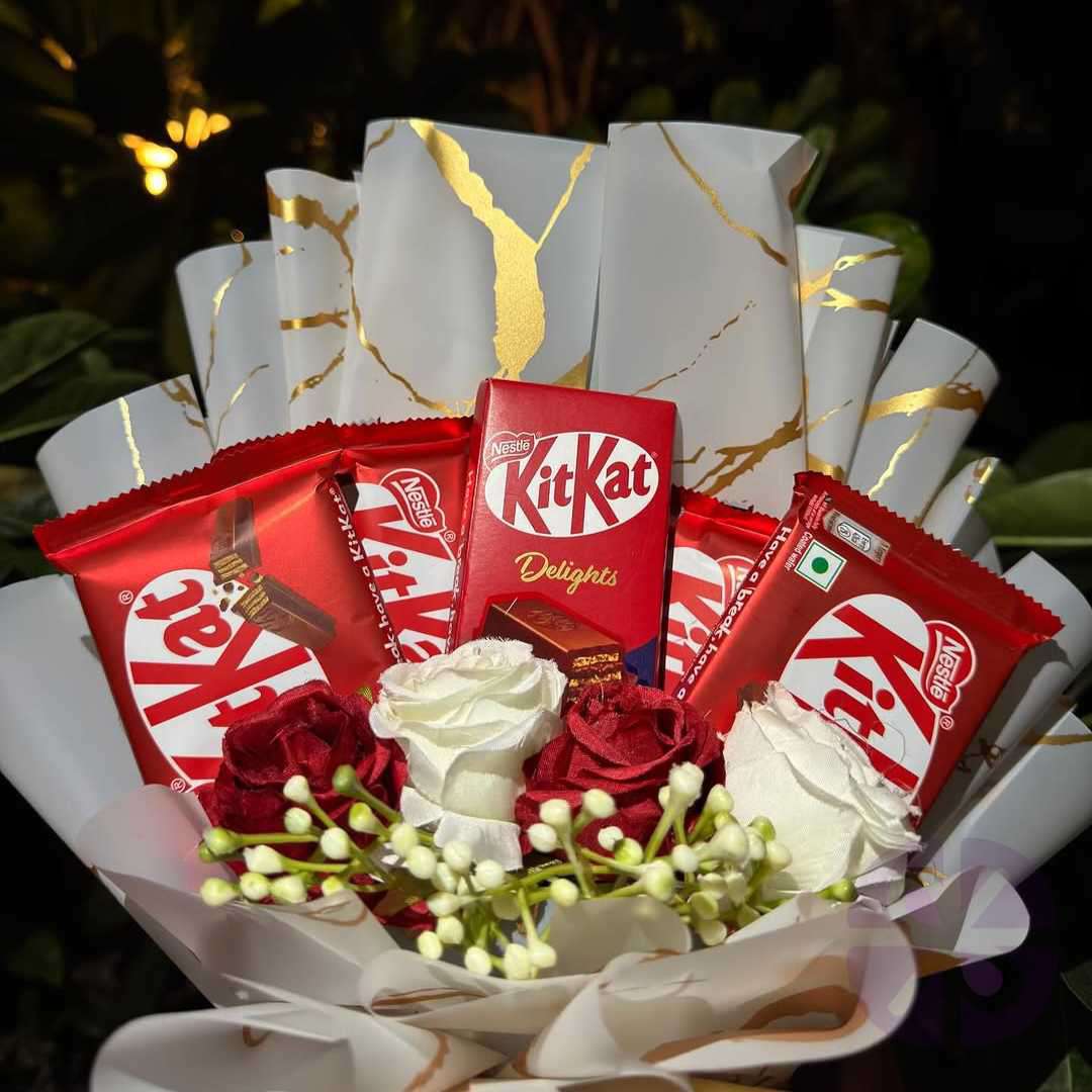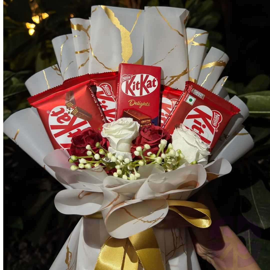 The Golden Indulgence: KitKat Rose & White Gold Bouquet