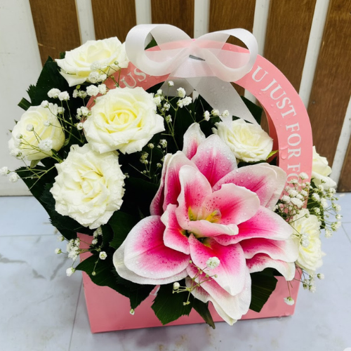 The "Just For You" Elegance Pink Lily & White Rose Mix Gift Box