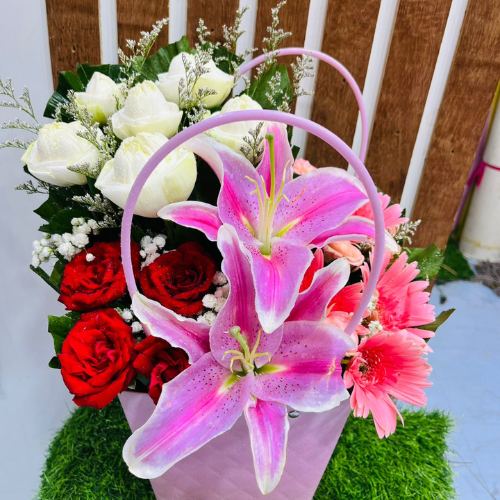 The Pink Delight Box Lily, Rose & Gerbera Mix Gift Box