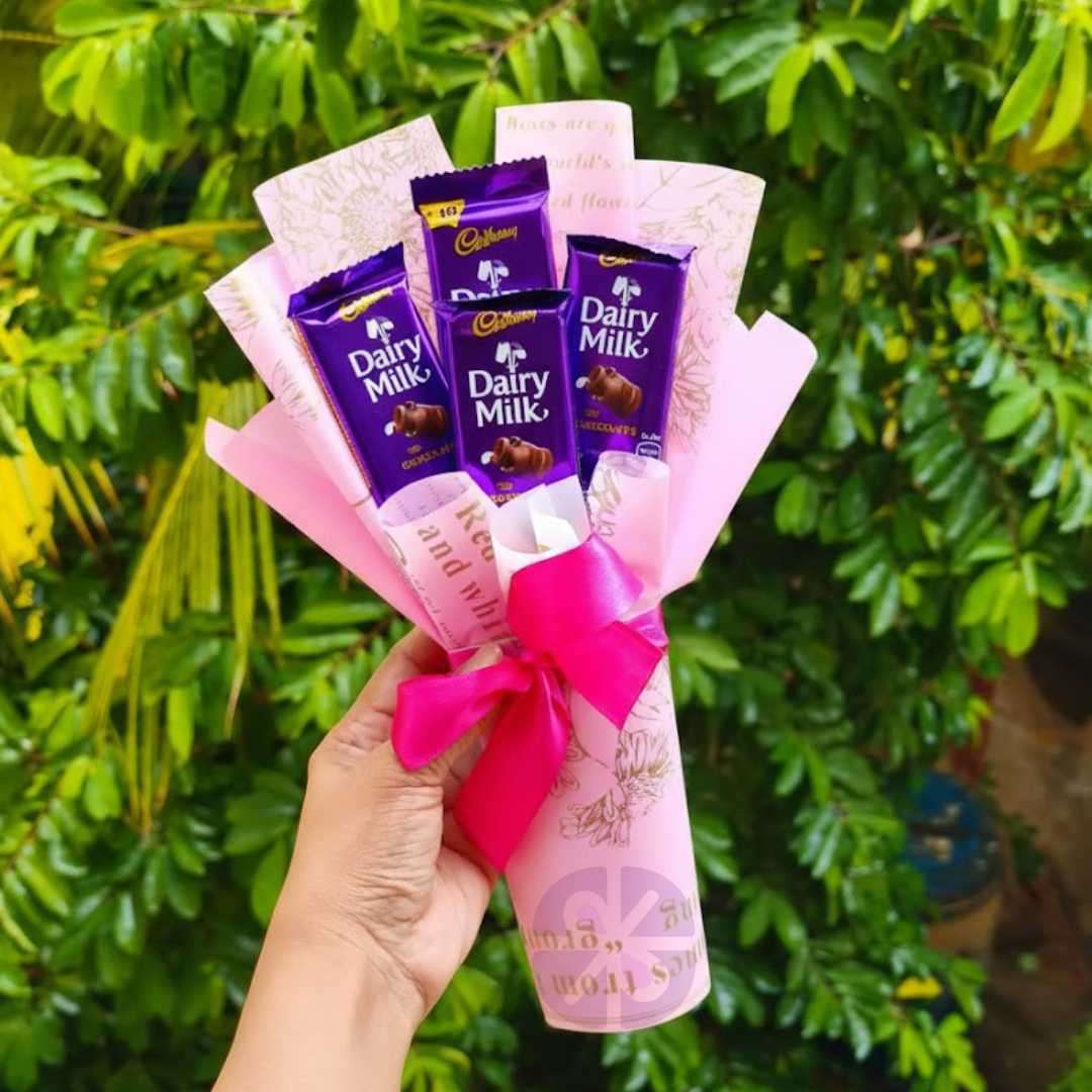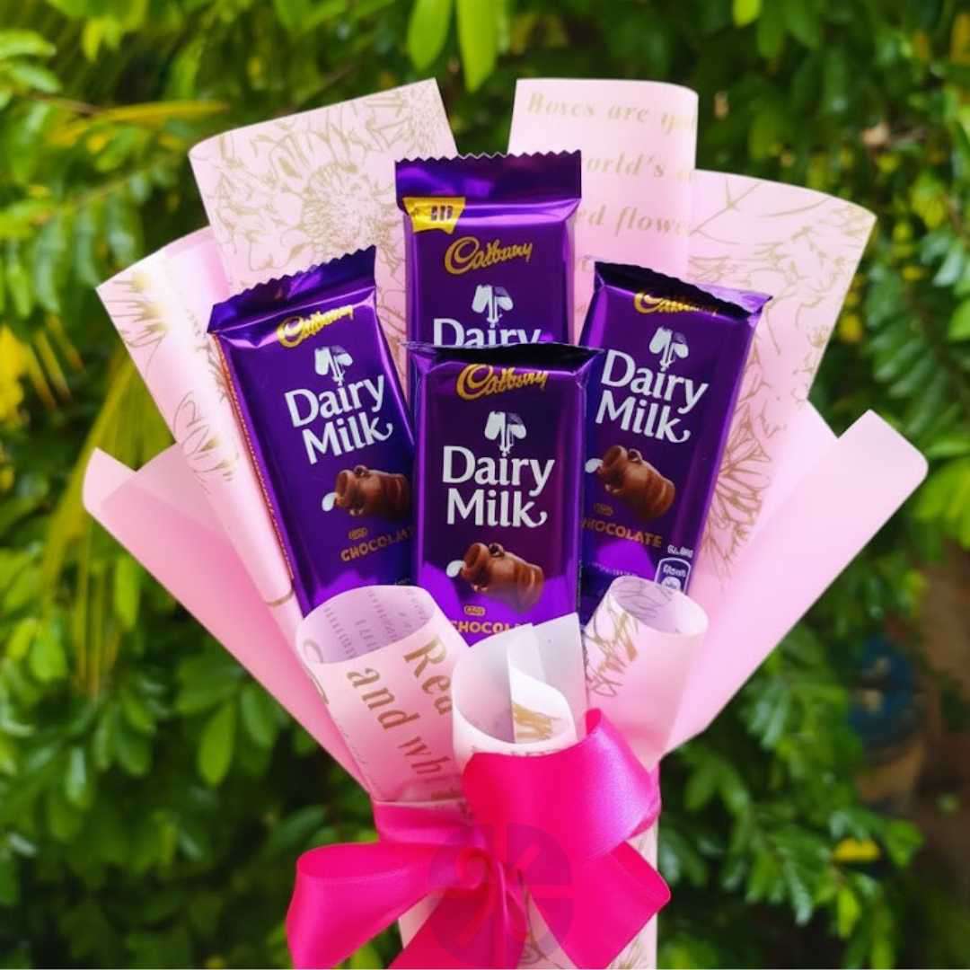 Why Customers Will Buy It: This bouquet is an excellent choice when looking for a thoughtful, small-scale gesture that is both sweet and visually pleasing. Customers buy this as a token of appreciation, a quick thank-you gift, a low-cost surprise, or a cute treat for a friend. It delivers the universally loved taste of Dairy Milk in a charming, ready-to-present format.