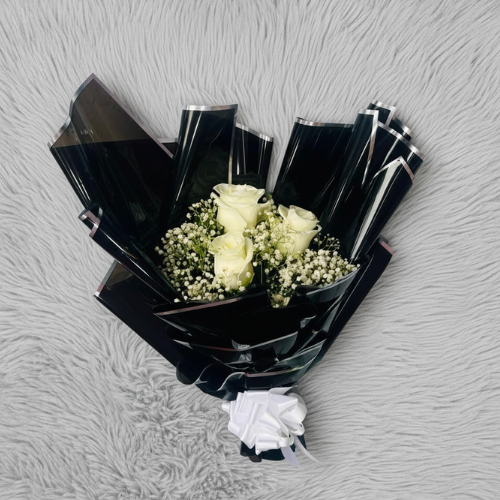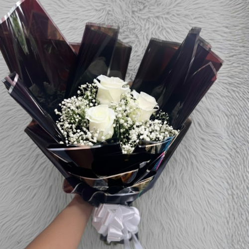 The Serene Classic White Rose & Baby's Breath Bouquet