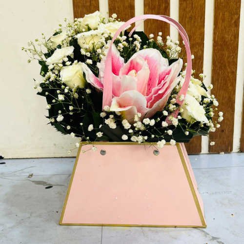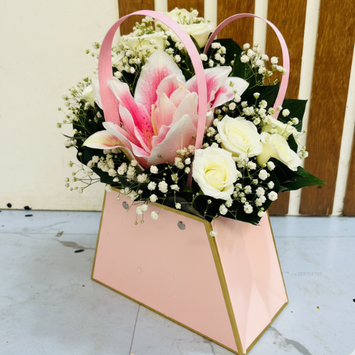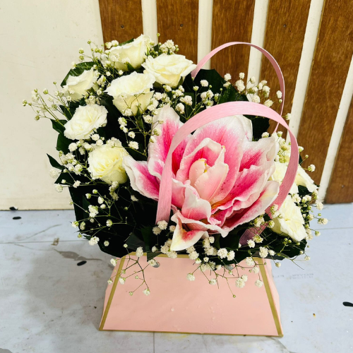The Spring Purity Pink Box Lily & White Rose Arrangement