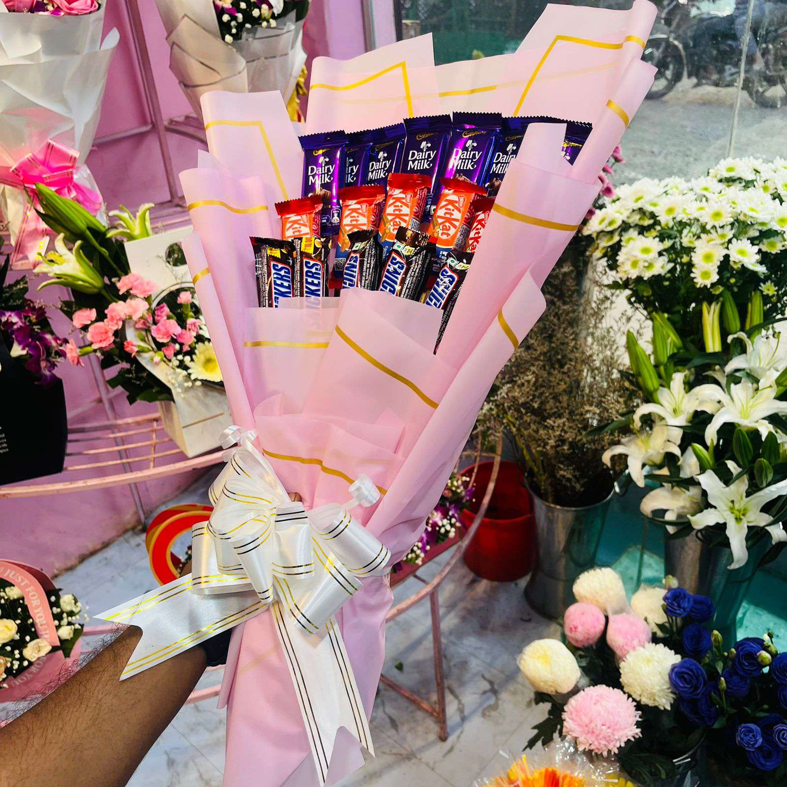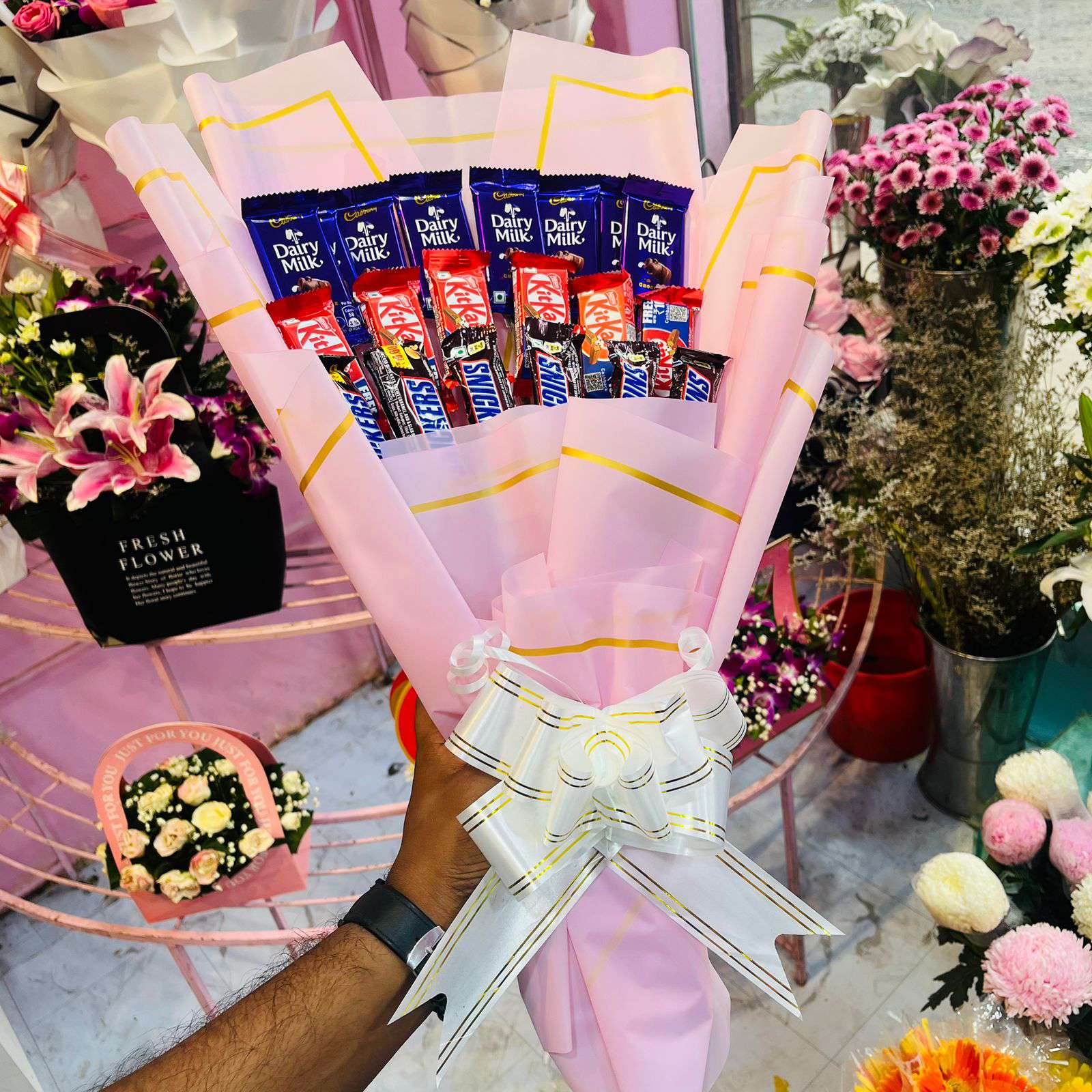 The Sweet Mix Chocolate Bar with Pink Wrap Bouquet