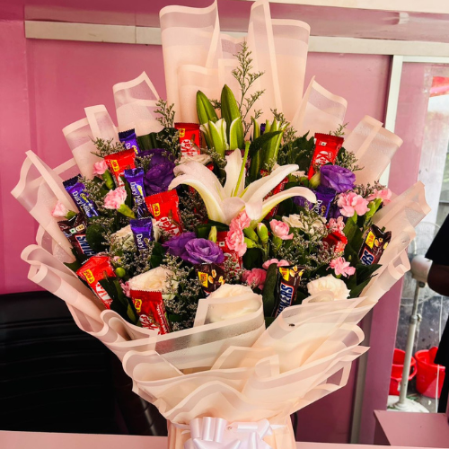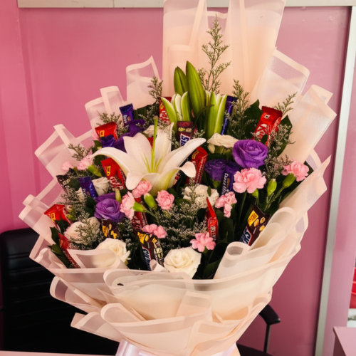 The Sweet Surprise Deluxe Flower & Chocolate Combo Bouquet
