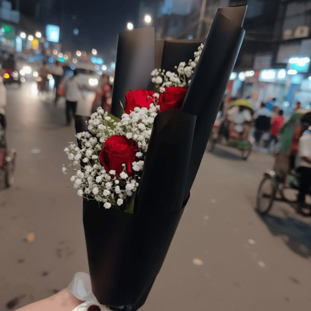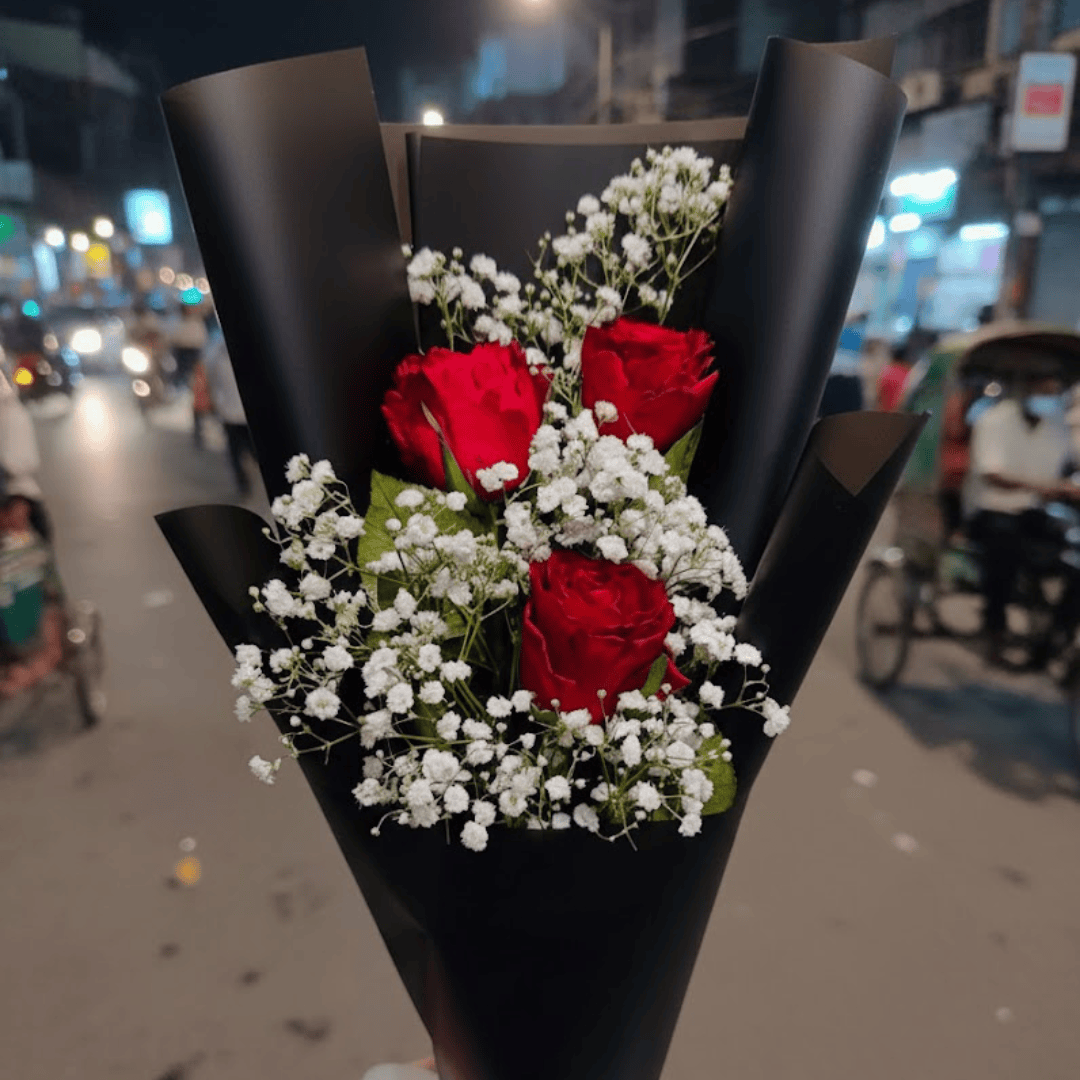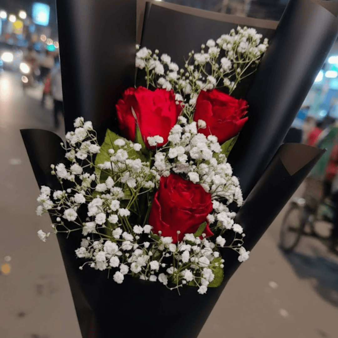 Three Roses of Love Premium Red Rose & Baby's Breath Mini Bouquet